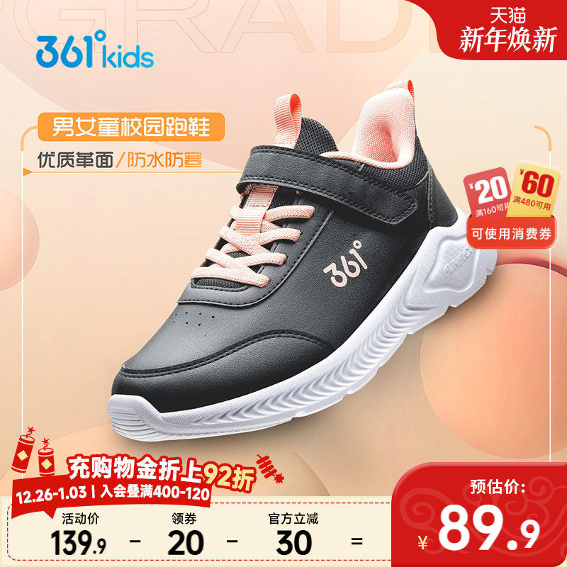 361童鞋女童运动鞋男童鞋秋冬皮面防水儿童跑步鞋中大童鞋校园