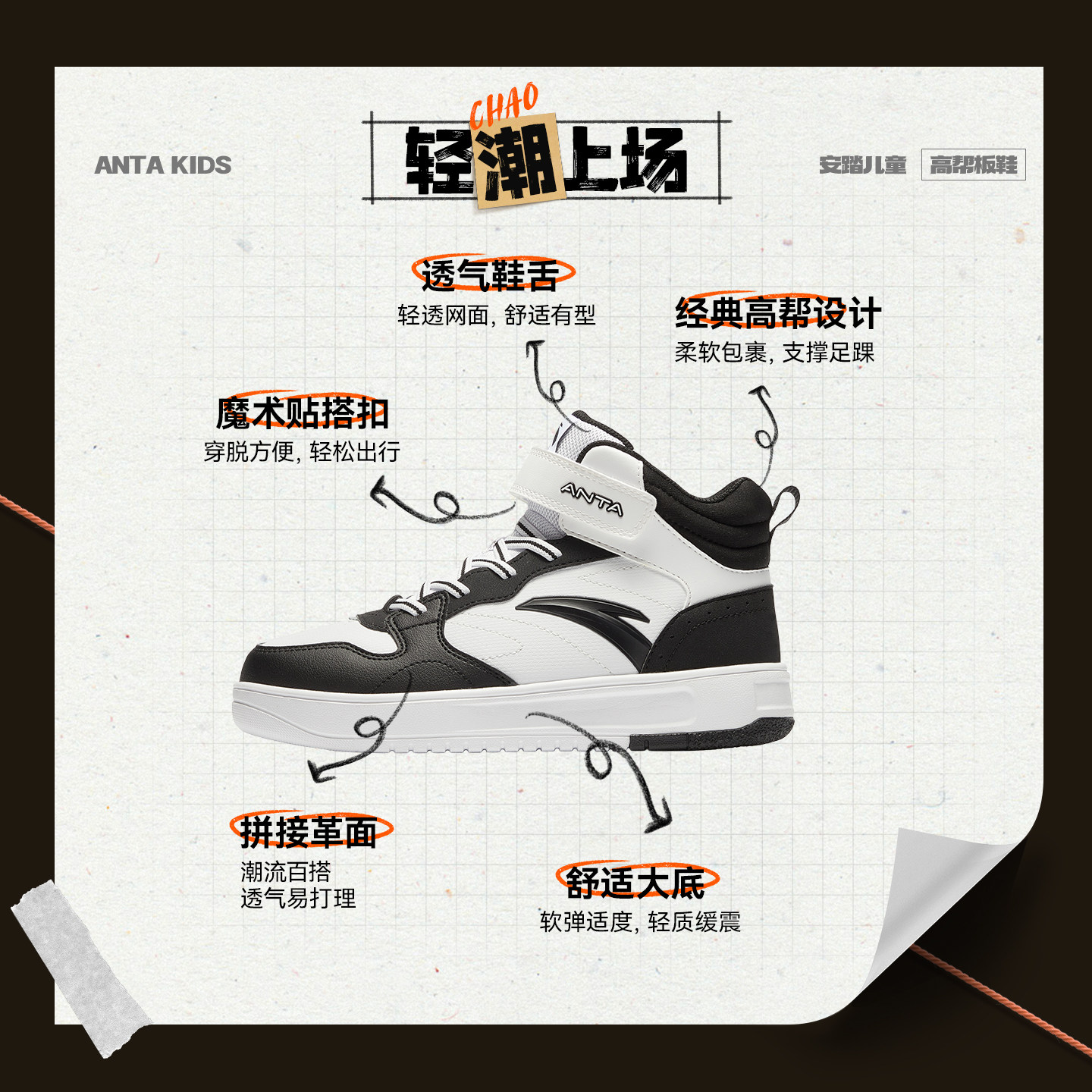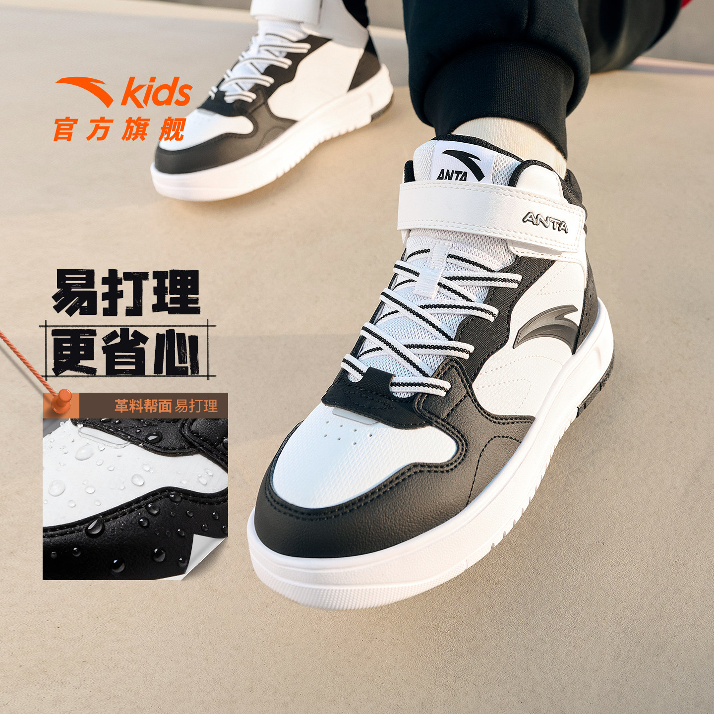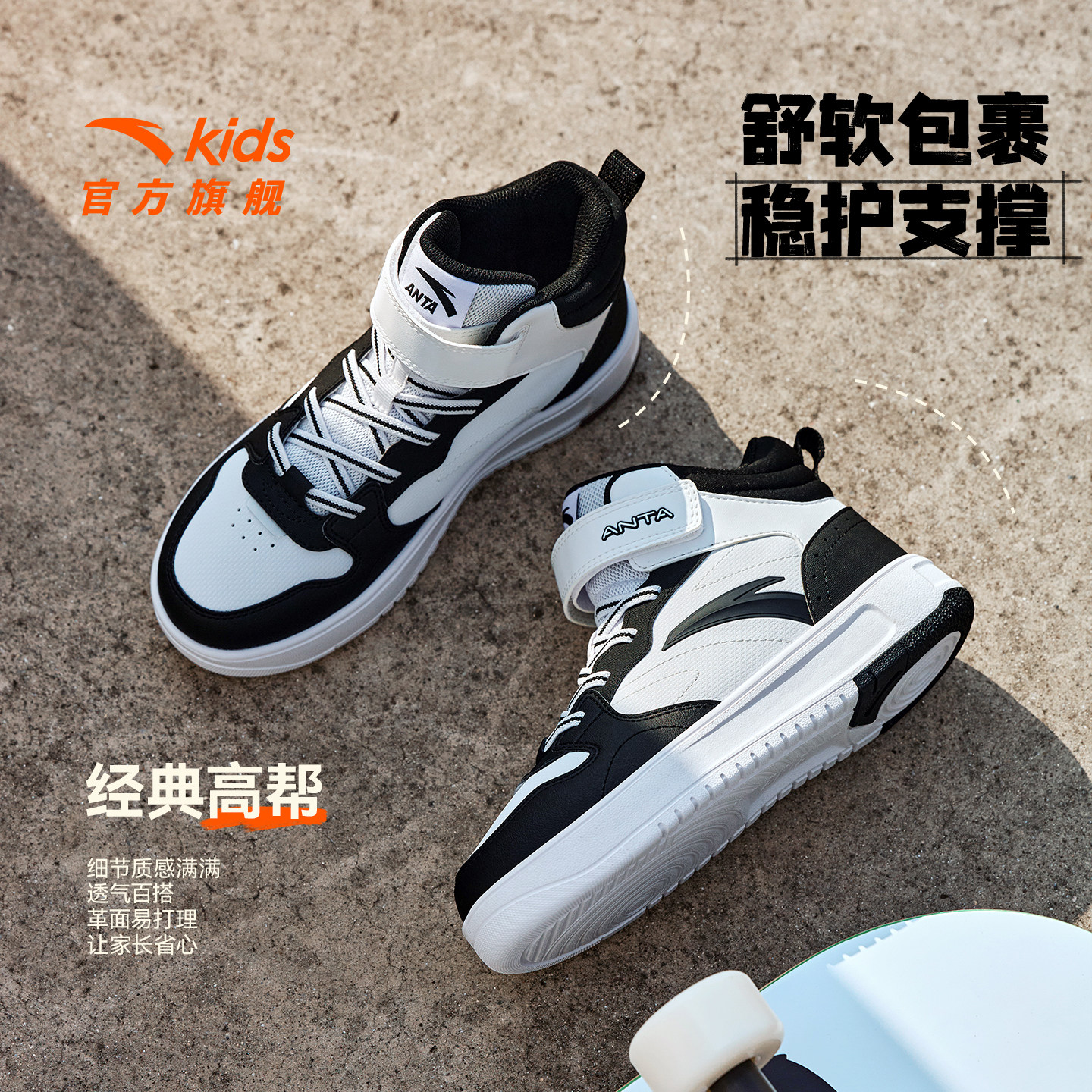 安踏儿童板鞋男童鞋2025秋冬加绒高帮棉鞋学生运动小白鞋滑板鞋