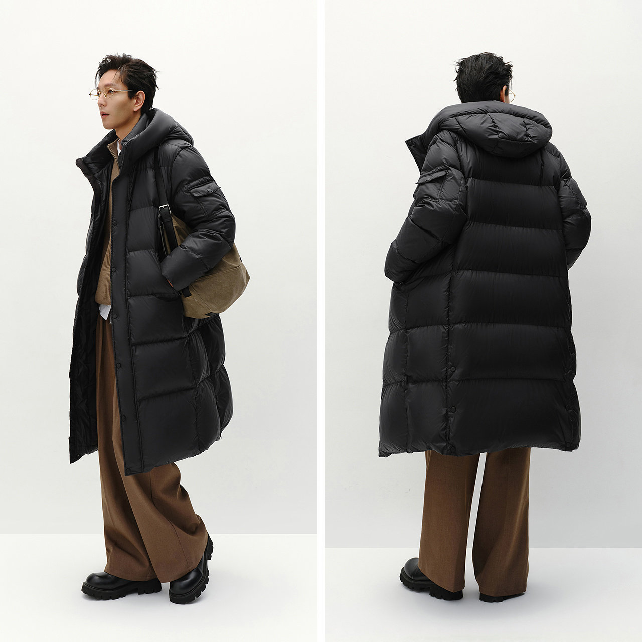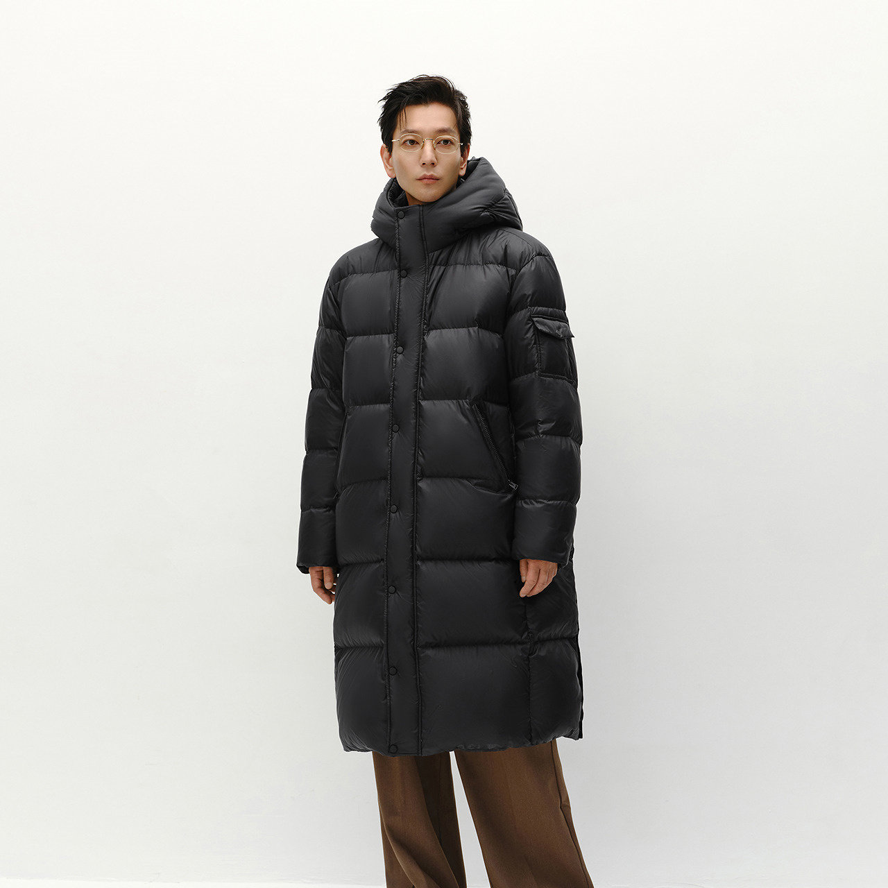 宽松长款连帽鹅绒服 防泼水抗静电