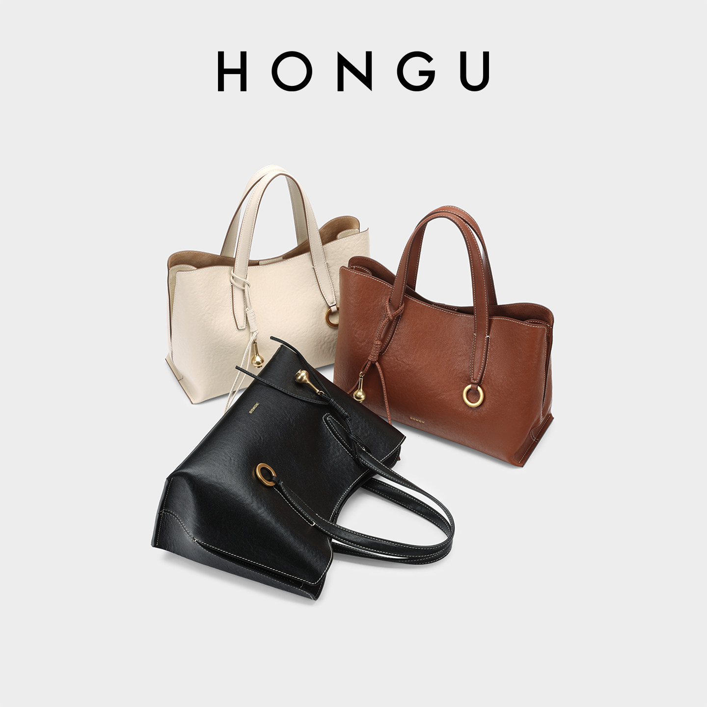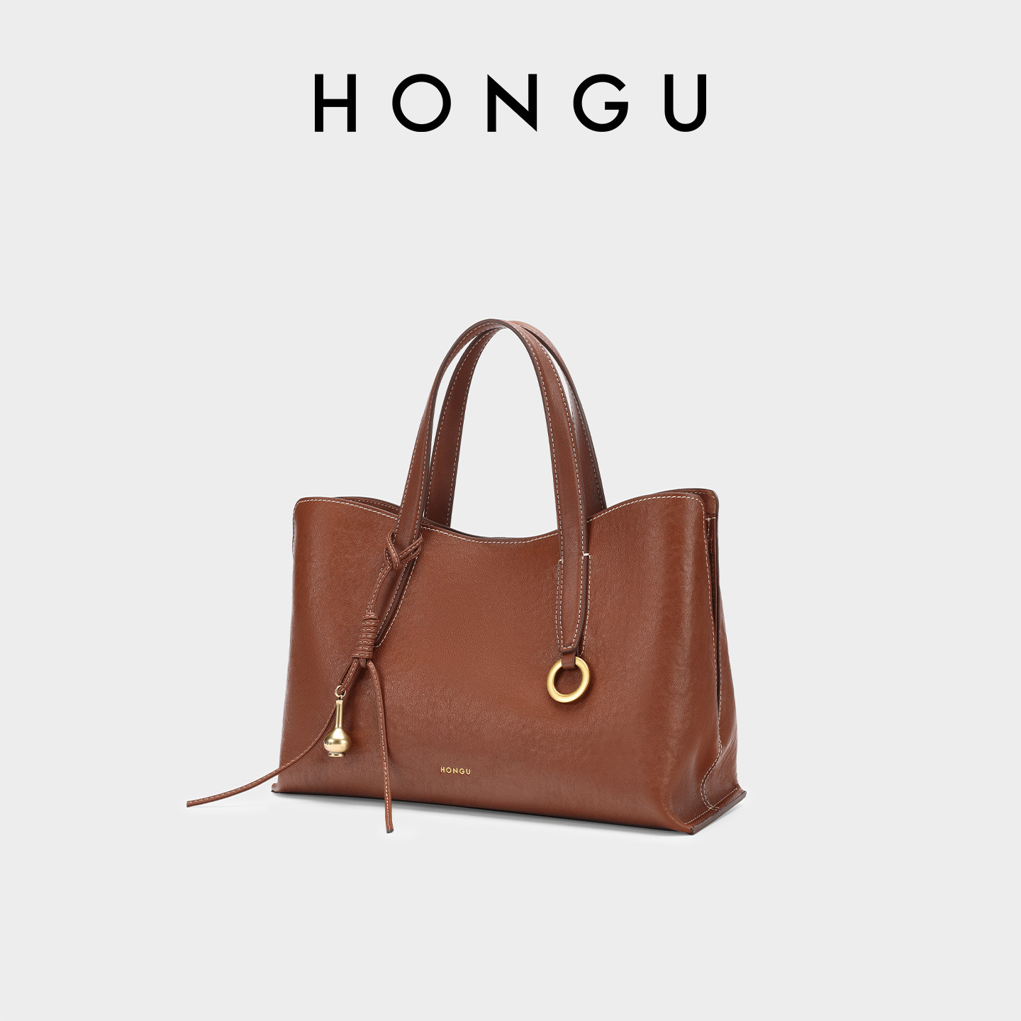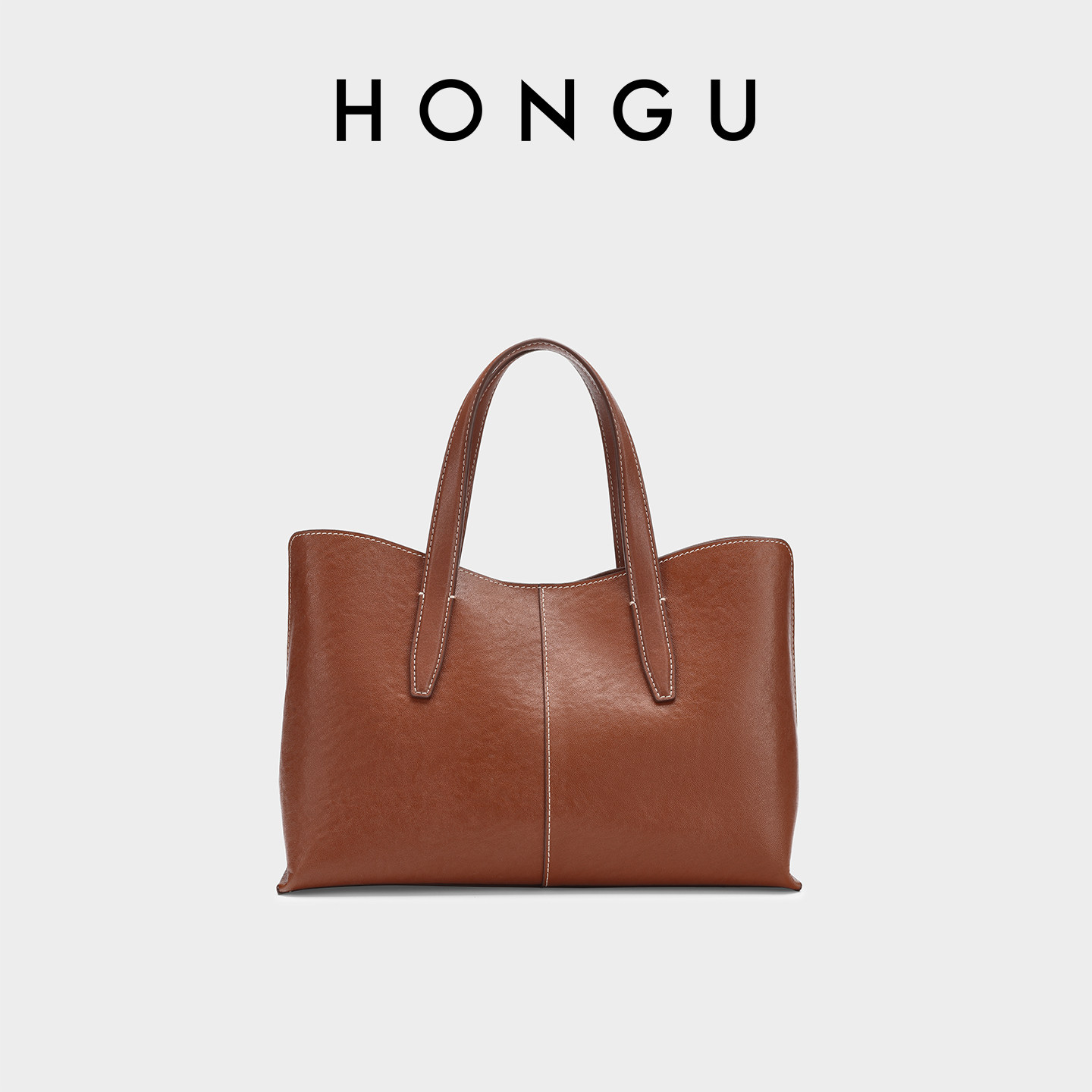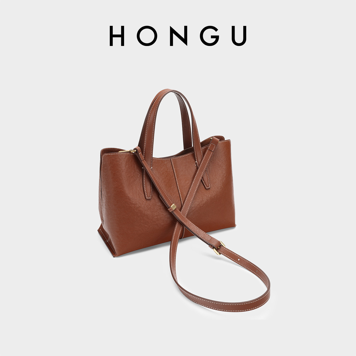 红谷包包2025新款真皮单肩手提包复古高级感托特包牛皮斜挎女士包