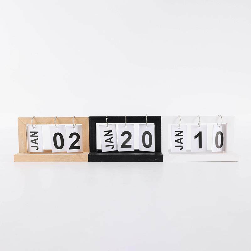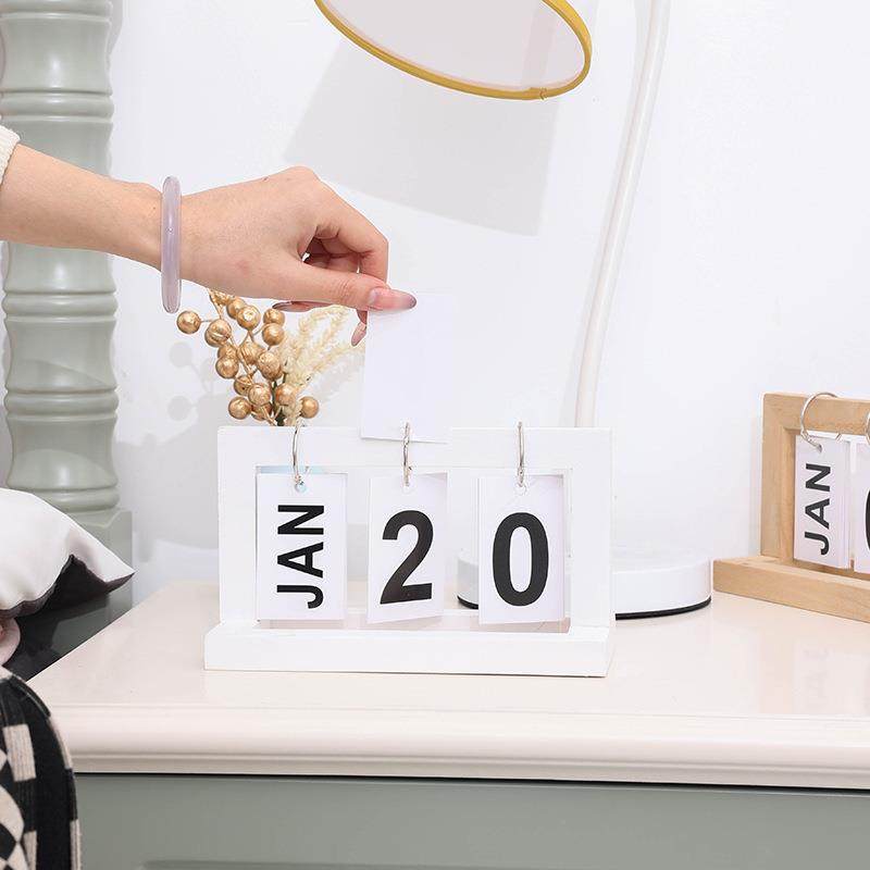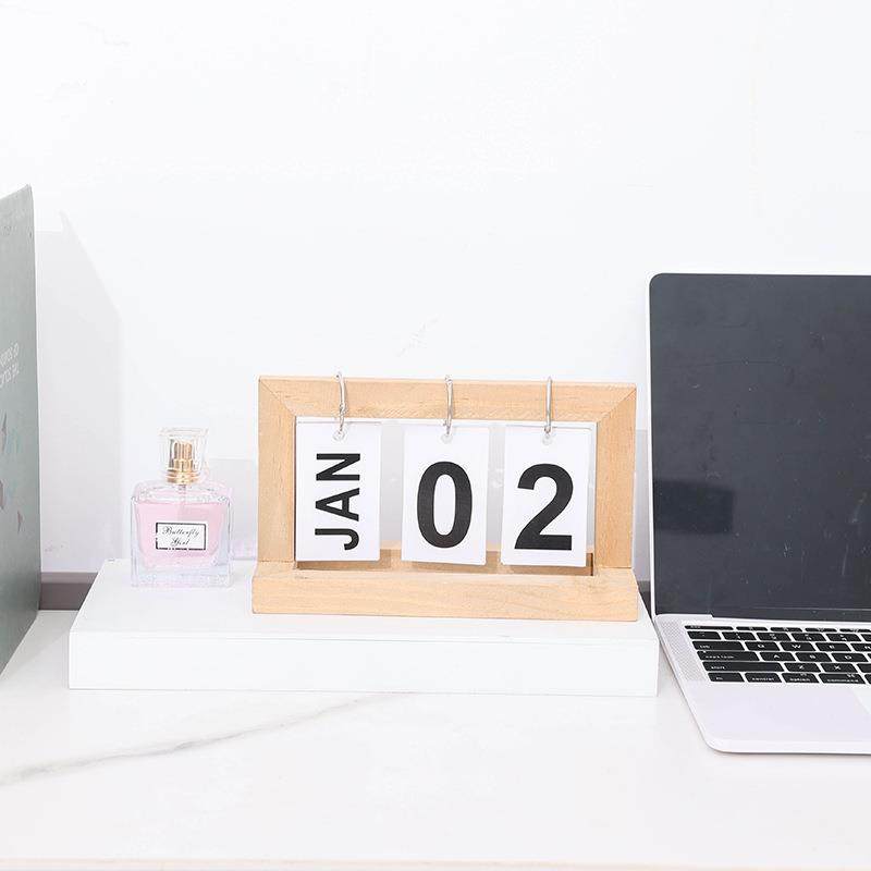 现代简约摆件家居卧室办公桌面小电视柜木制日历木质日历摆件
