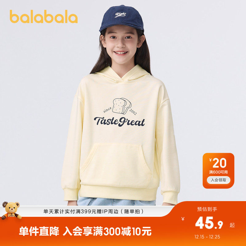 巴拉巴拉童装女童卫衣春装新款中大童连帽上衣长袖时尚简约潮
