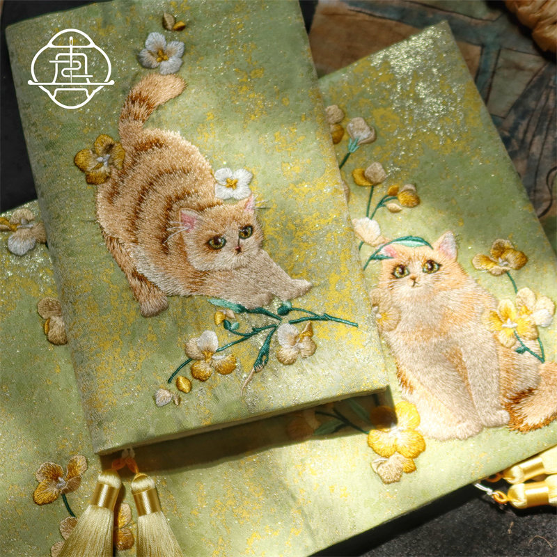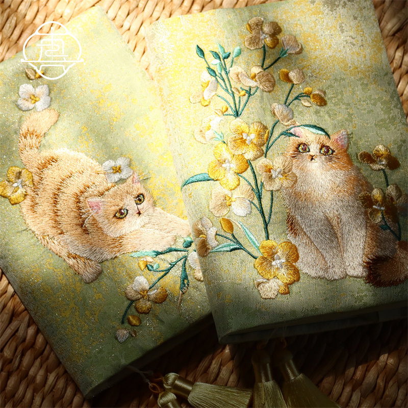 真我 扑花猫猫 原创重工刺绣可爱手账本手工布书衣日记笔记本a5a6