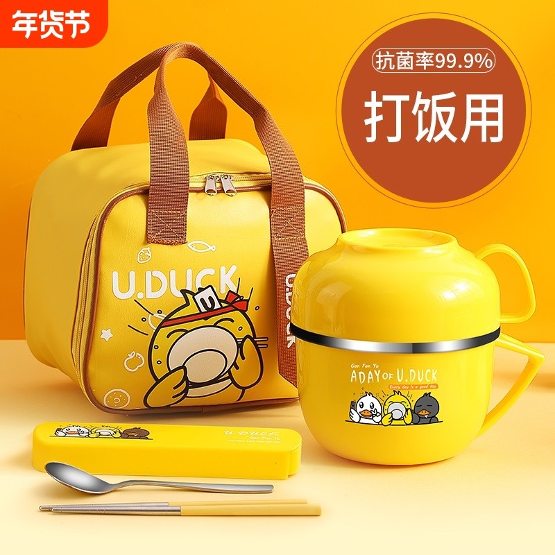 饭盒小黄鸭食堂打饭饭碗儿童专用小学生316不锈钢饭缸t保温食品级