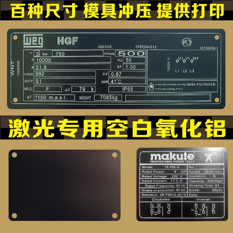阳极氧化空白黑铝铭牌定做激光打标牌刻字雕刻镭射模具冲压不锈钢