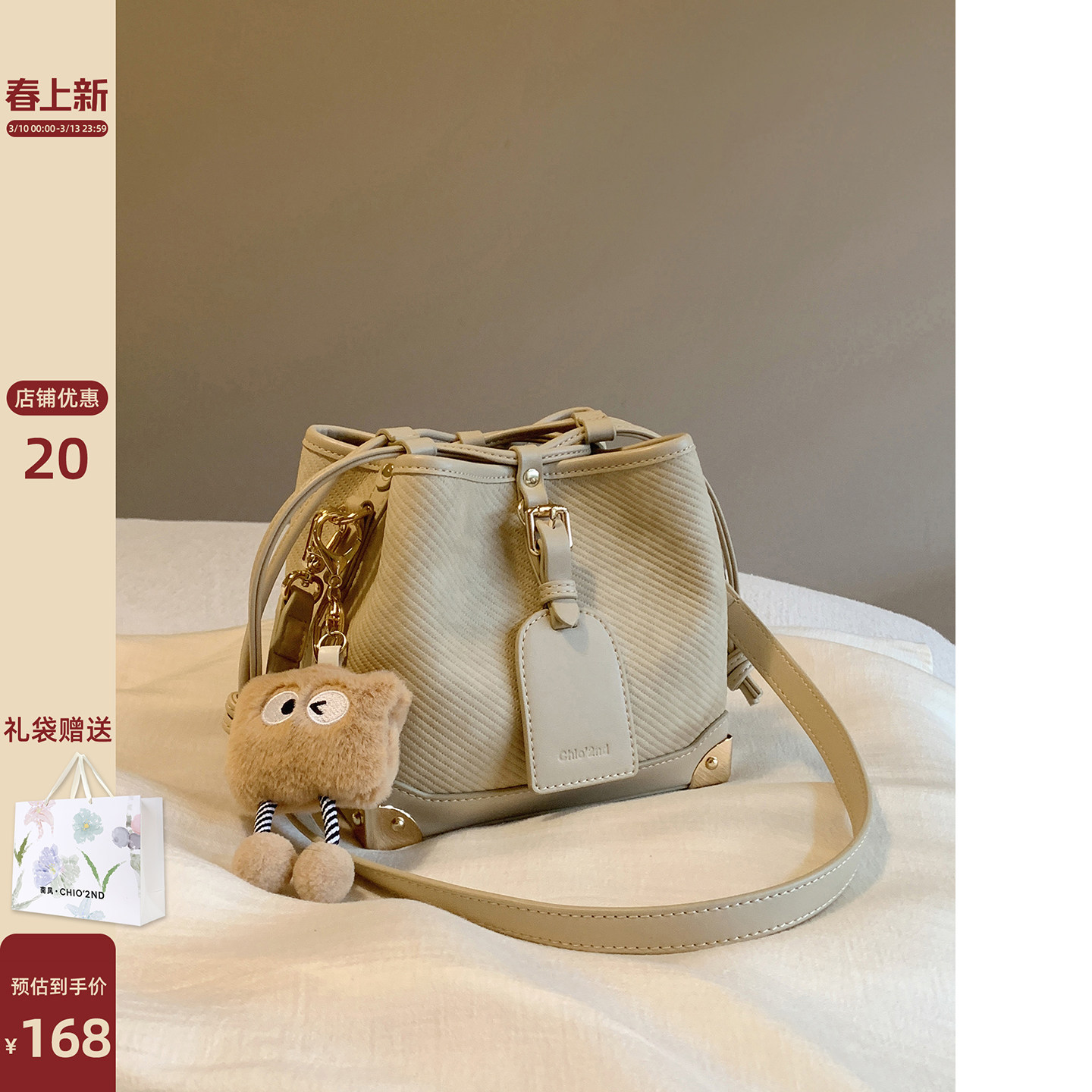 南风Chio2nd 芝芝奶芙水桶包包女淡黄色手提包秋冬超火单肩斜挎包