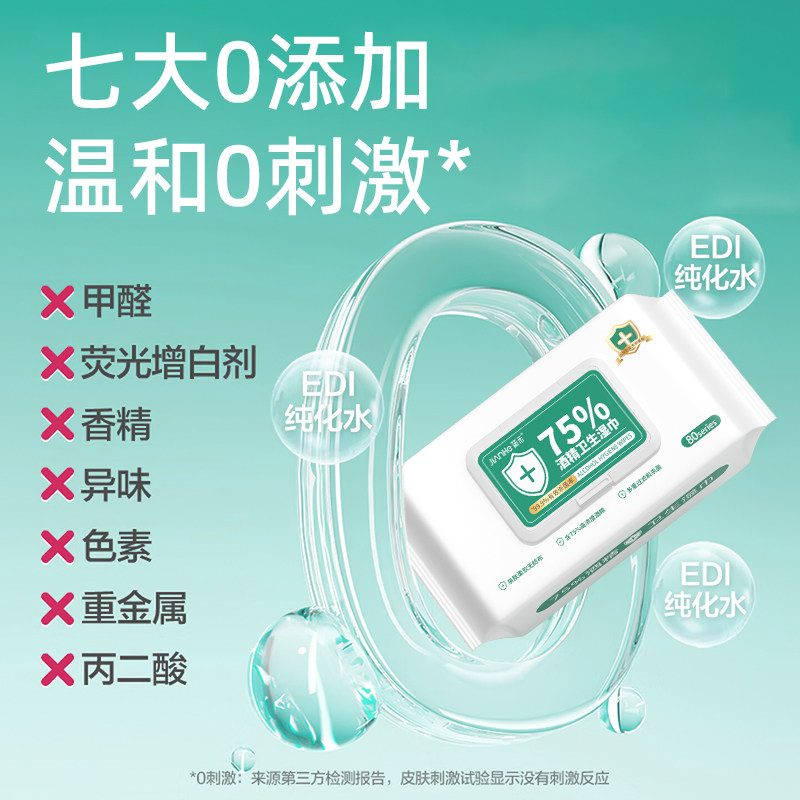 消毒湿巾酒精医用级加厚80抽75度大包装一次性卫生手口杀菌大尺寸