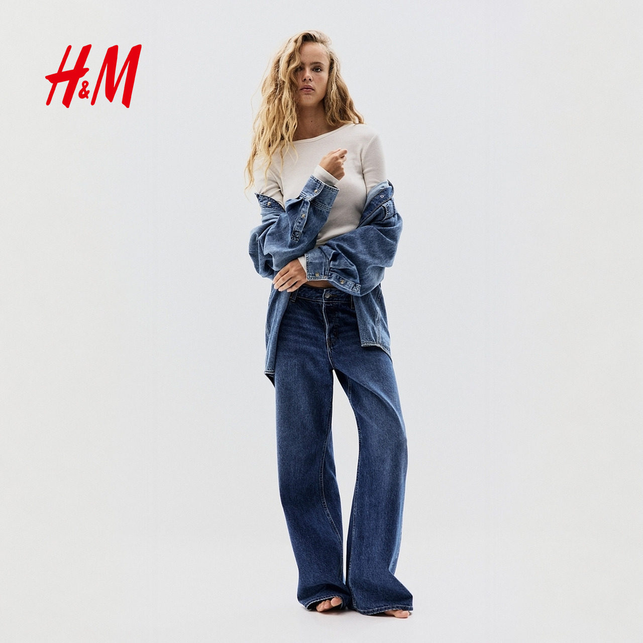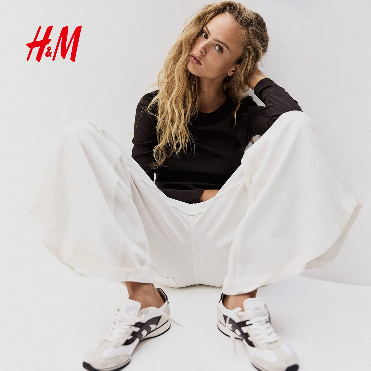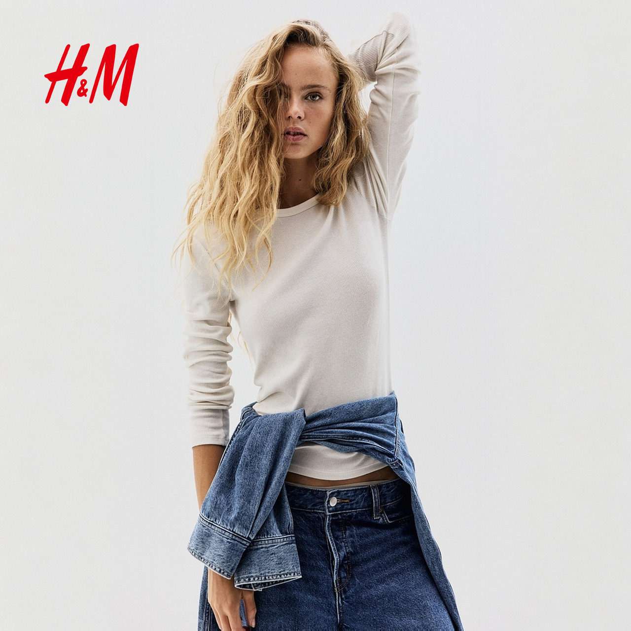 HM女装T恤2025冬季新款修身圆领棉质打底衫内搭长袖上衣1260555