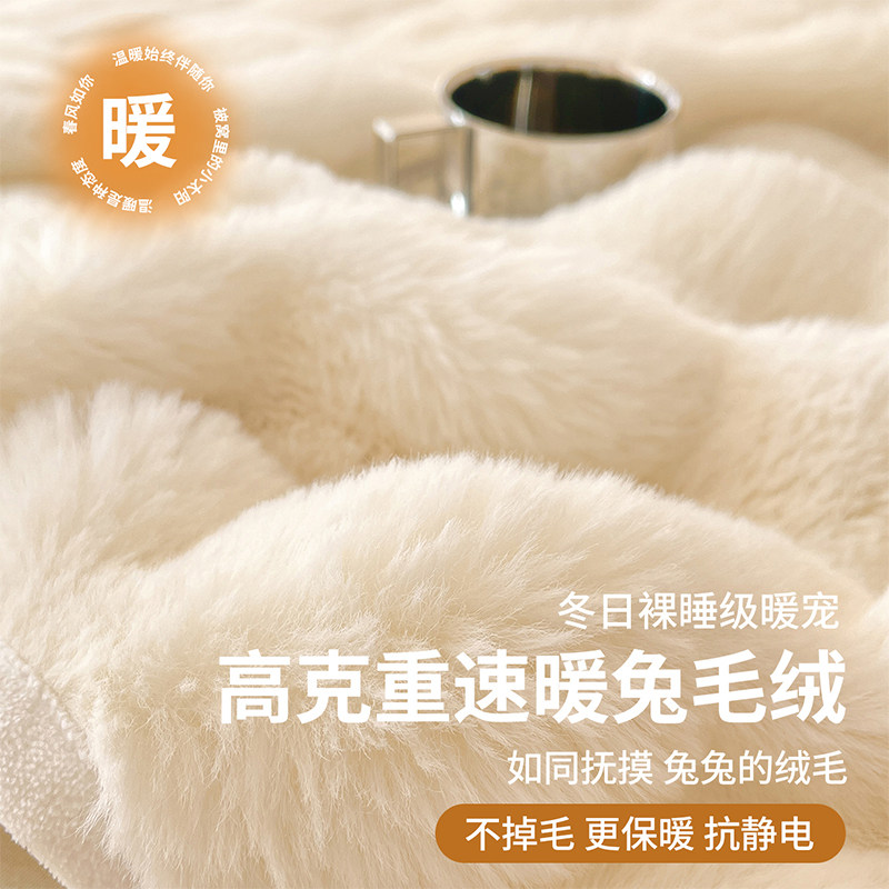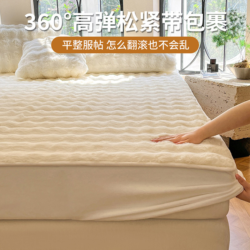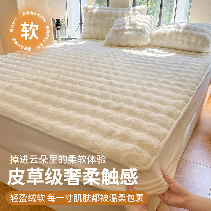 无印良品兔毛绒床笠罩单件加厚冬季珊瑚牛奶绒床垫保护罩2025新款