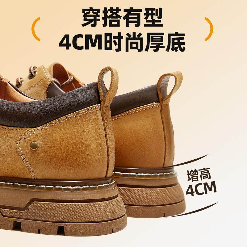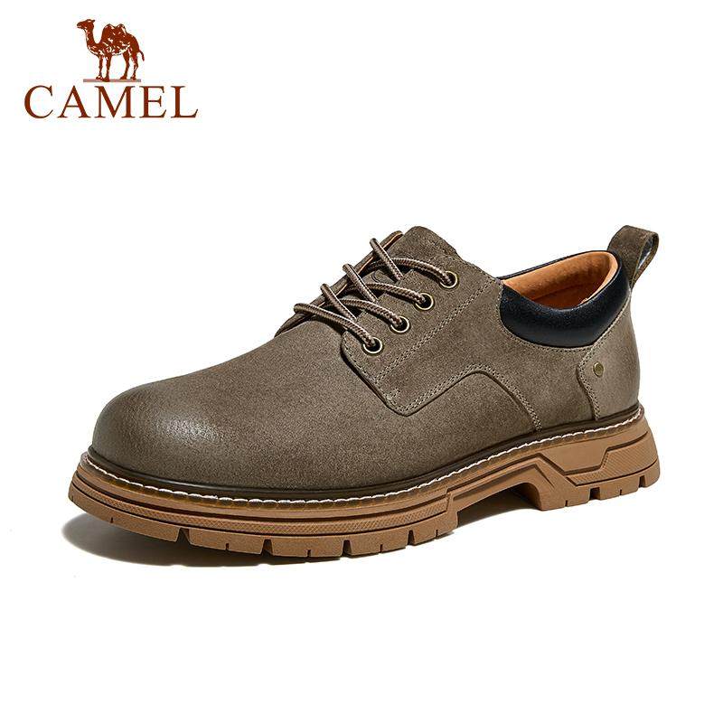 骆驼男鞋2025春季新款低帮马丁鞋厚底皮鞋男复古擦色时尚工装鞋男