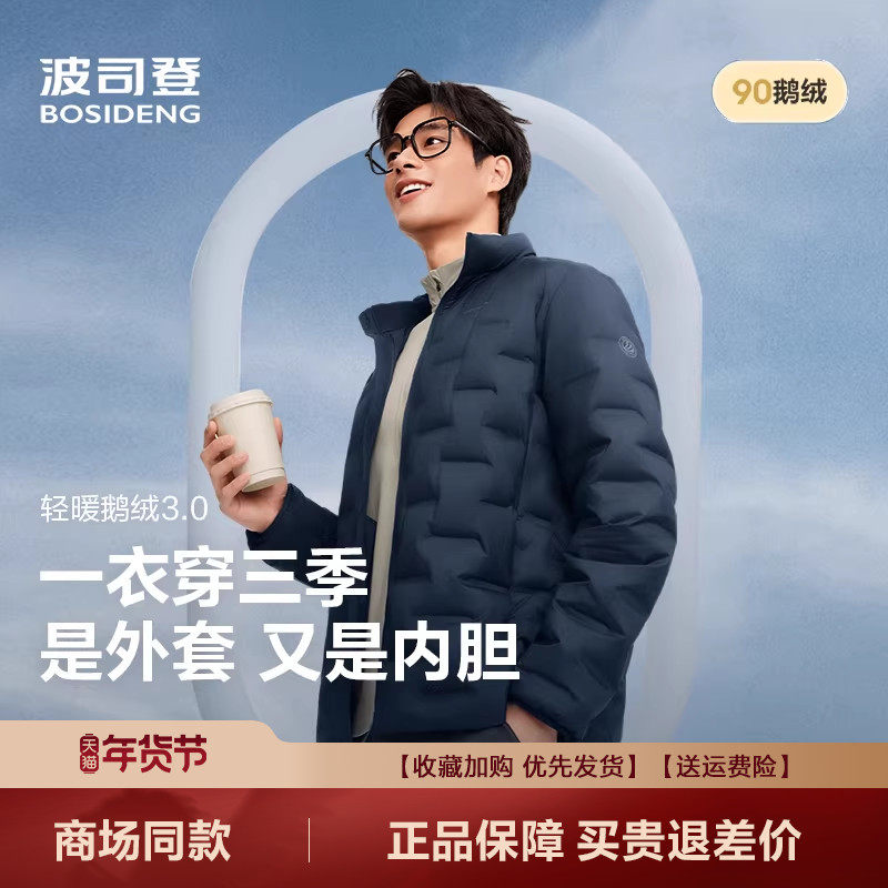 云感鹅绒|明星同款|波司登25新款轻薄立领羽绒服男士保暖外套时尚