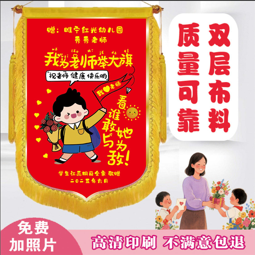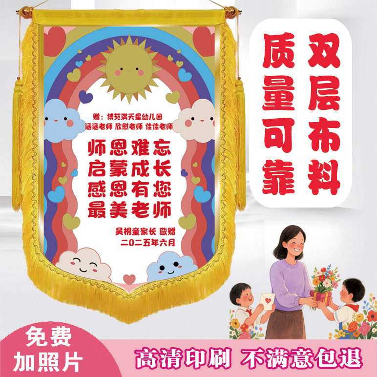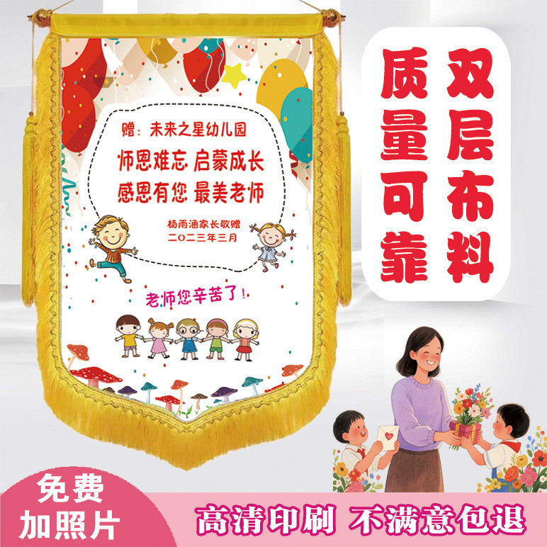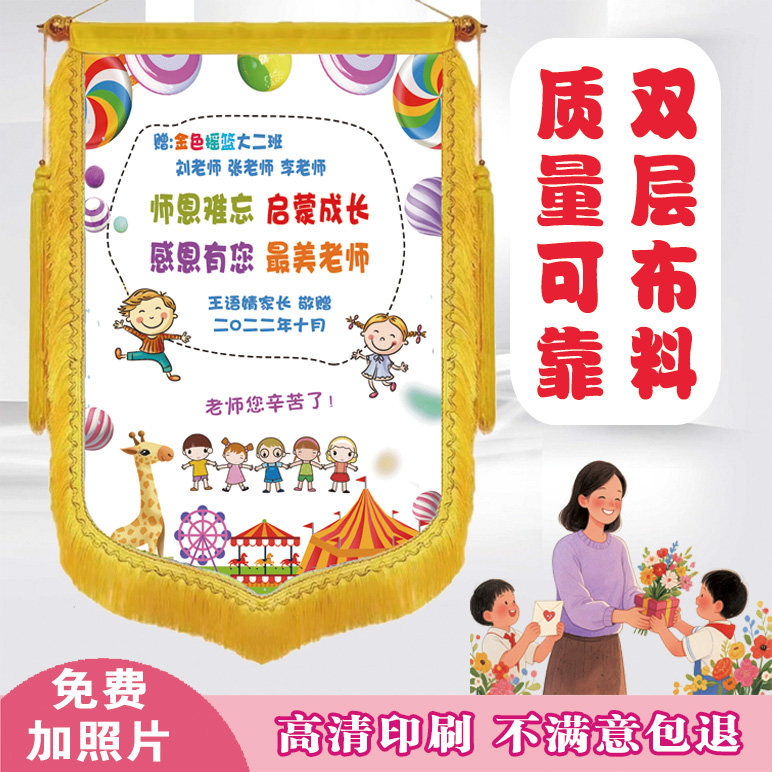 私人订制彩色锦旗感谢老师幼儿园医生月嫂生日彩色可放照片锦旗