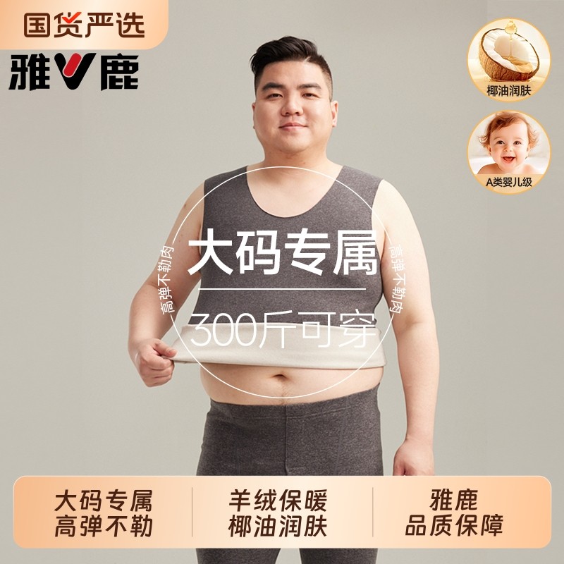 雅鹿男士保暖背心马甲秋冬加肥加大码300斤男款打底无痕上衣保温