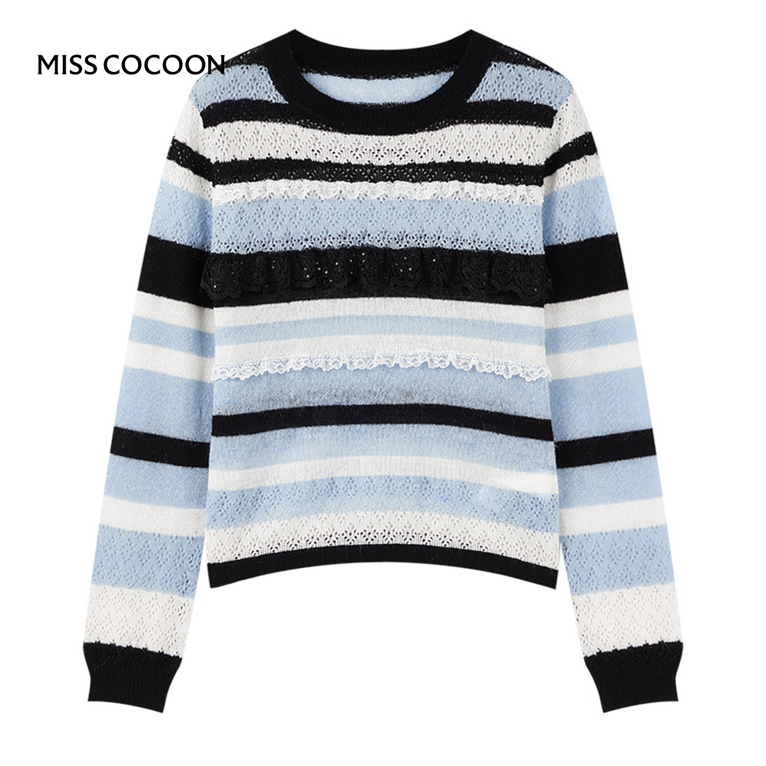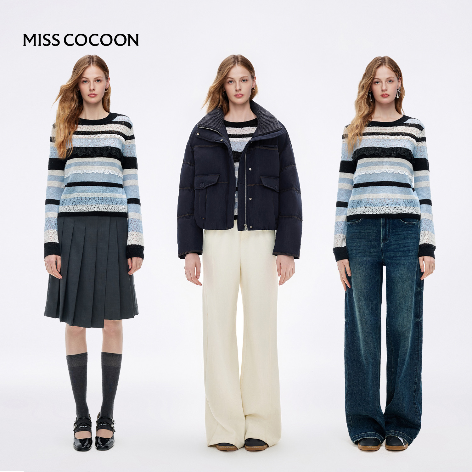 MISSCOCOON可可尼马海毛条纹毛衣女2025冬季新款宽松羊毛针织衫
