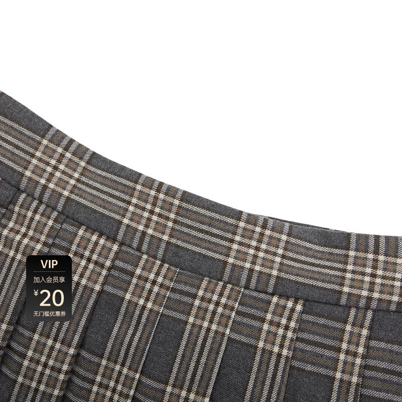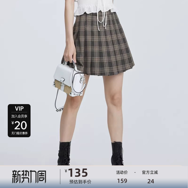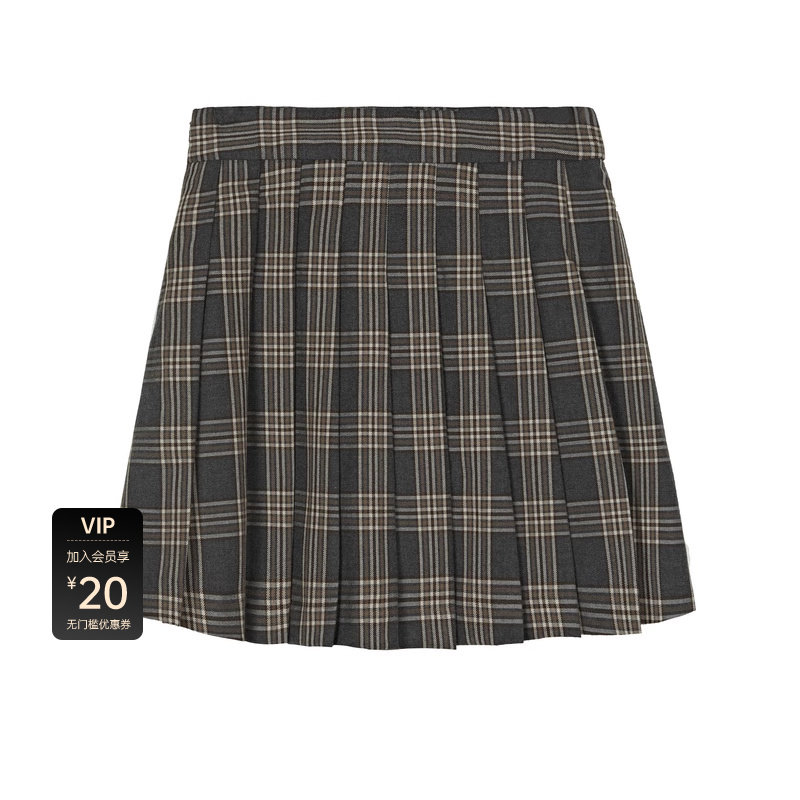 学院风 撞色格纹 百褶短裙