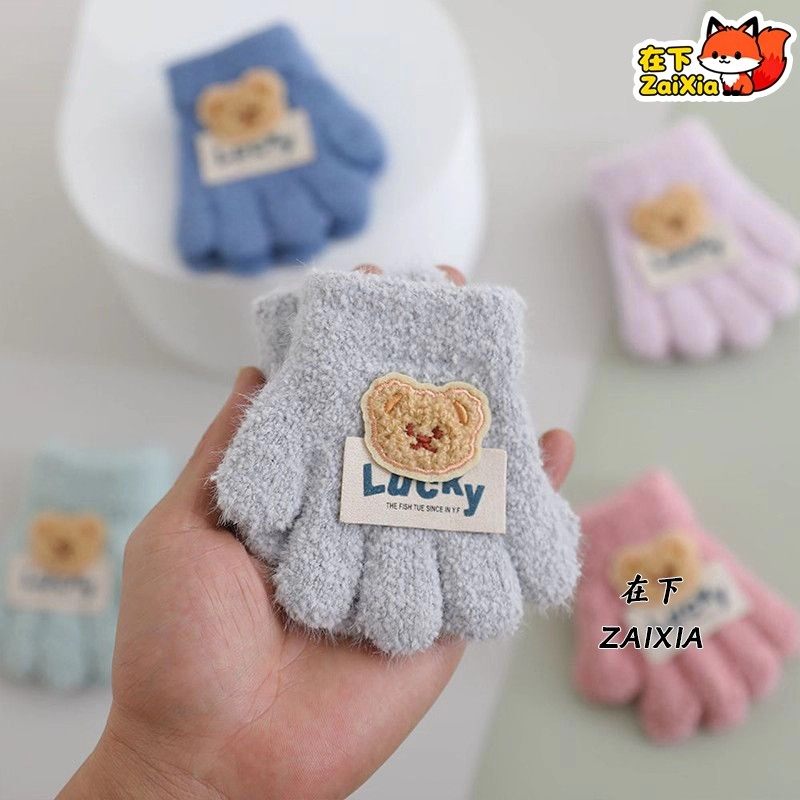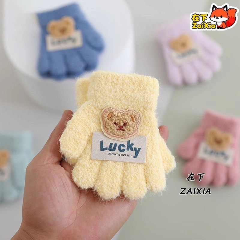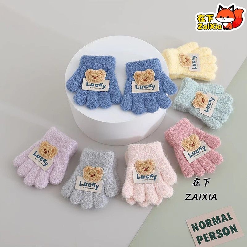 宝宝五指儿童手套秋冬季小熊珊瑚绒男童分指保暖防寒女童护手小孩