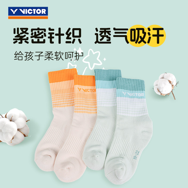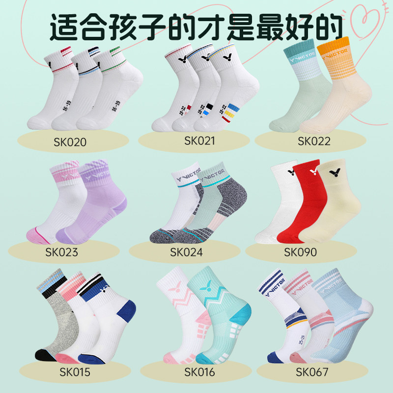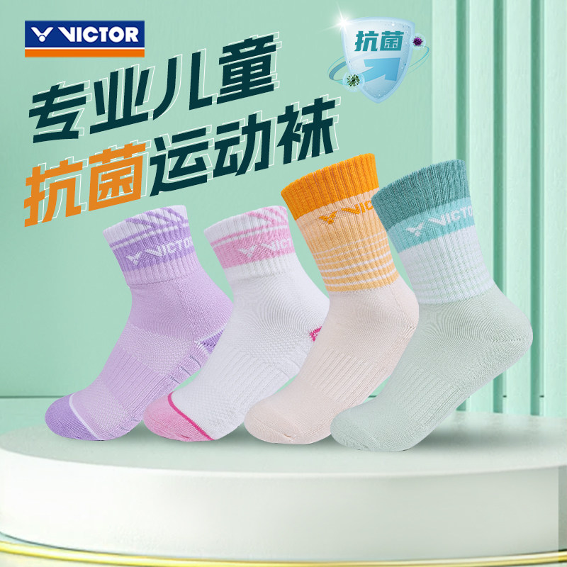victor胜利羽毛球袜儿童加厚毛巾底青少年运动中短筒袜官方威克多