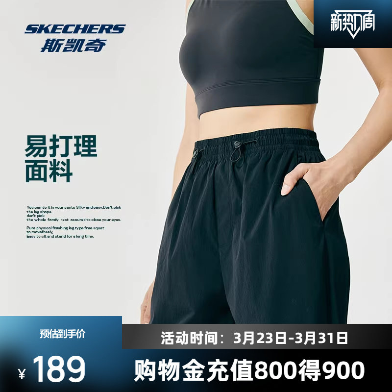 斯凯奇速干伞兵裤闪穿裤春夏女款阔腿褶皱凉感运动工装抽绳长裤