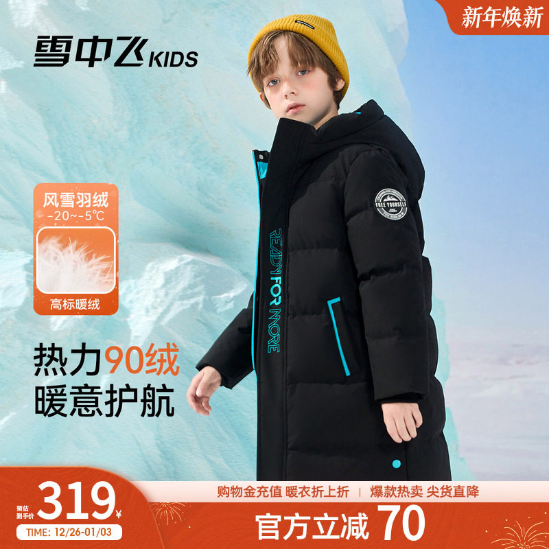 【远红外】雪中飞kids儿童羽绒服加厚男女童长款工装新款保暖外套