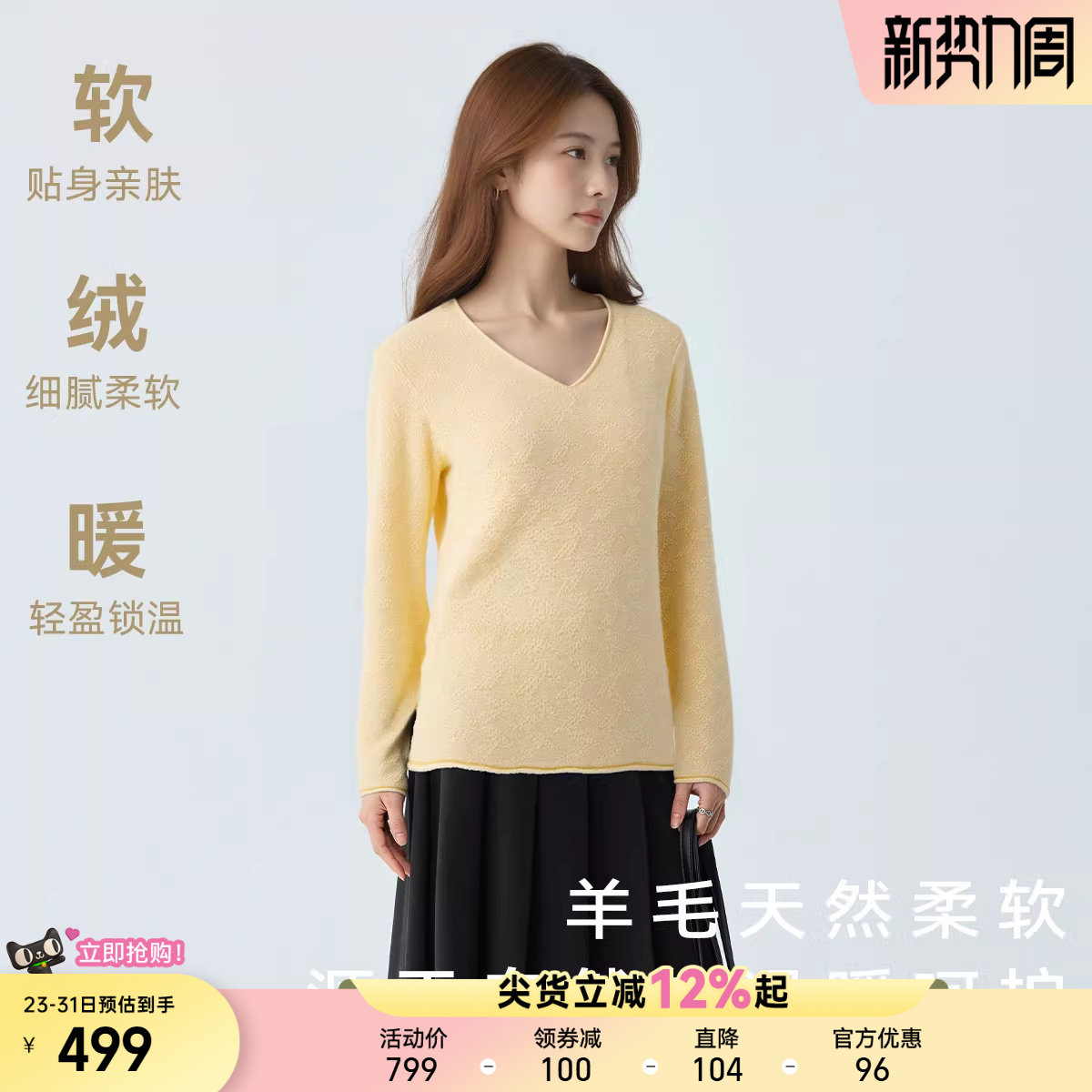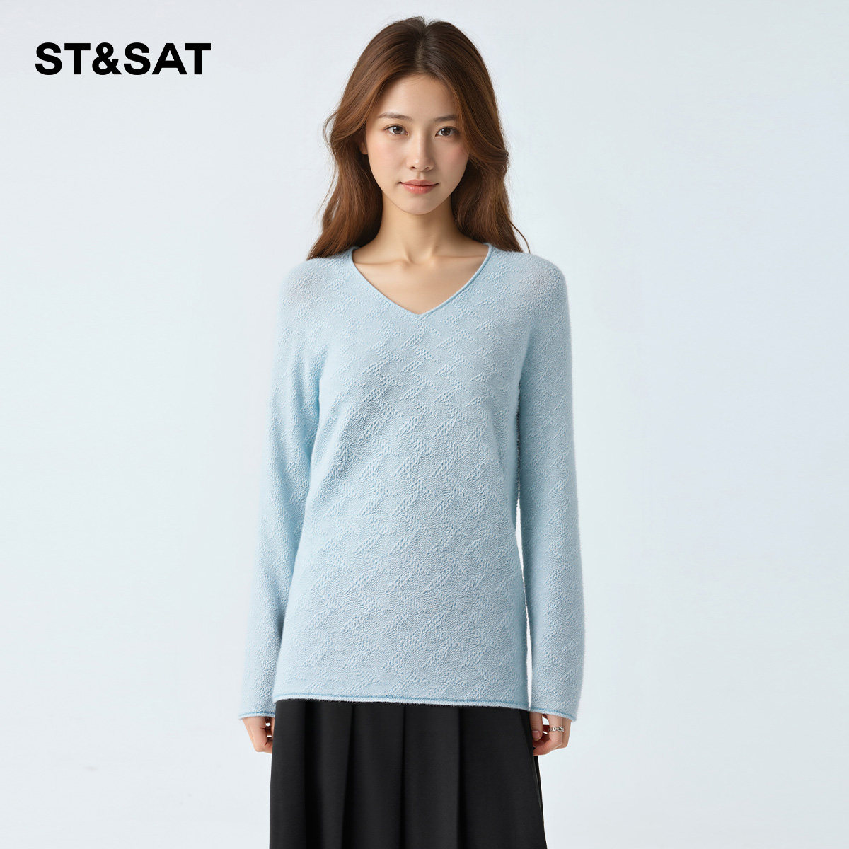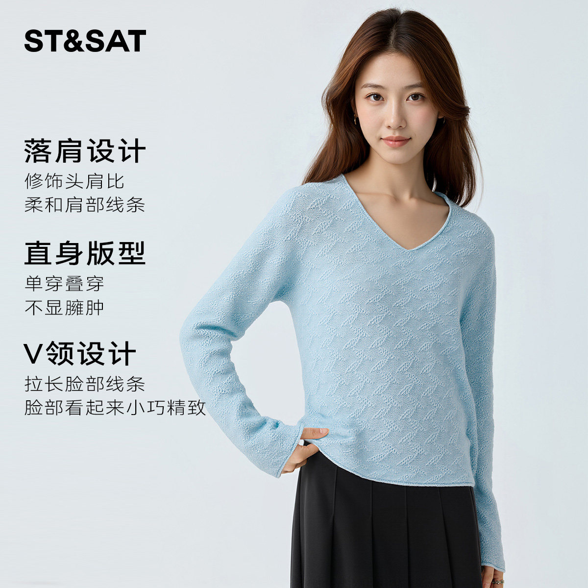 星期六高级感时尚v领针织衫女士2026春季新款羊绒打底衫宽松毛衣