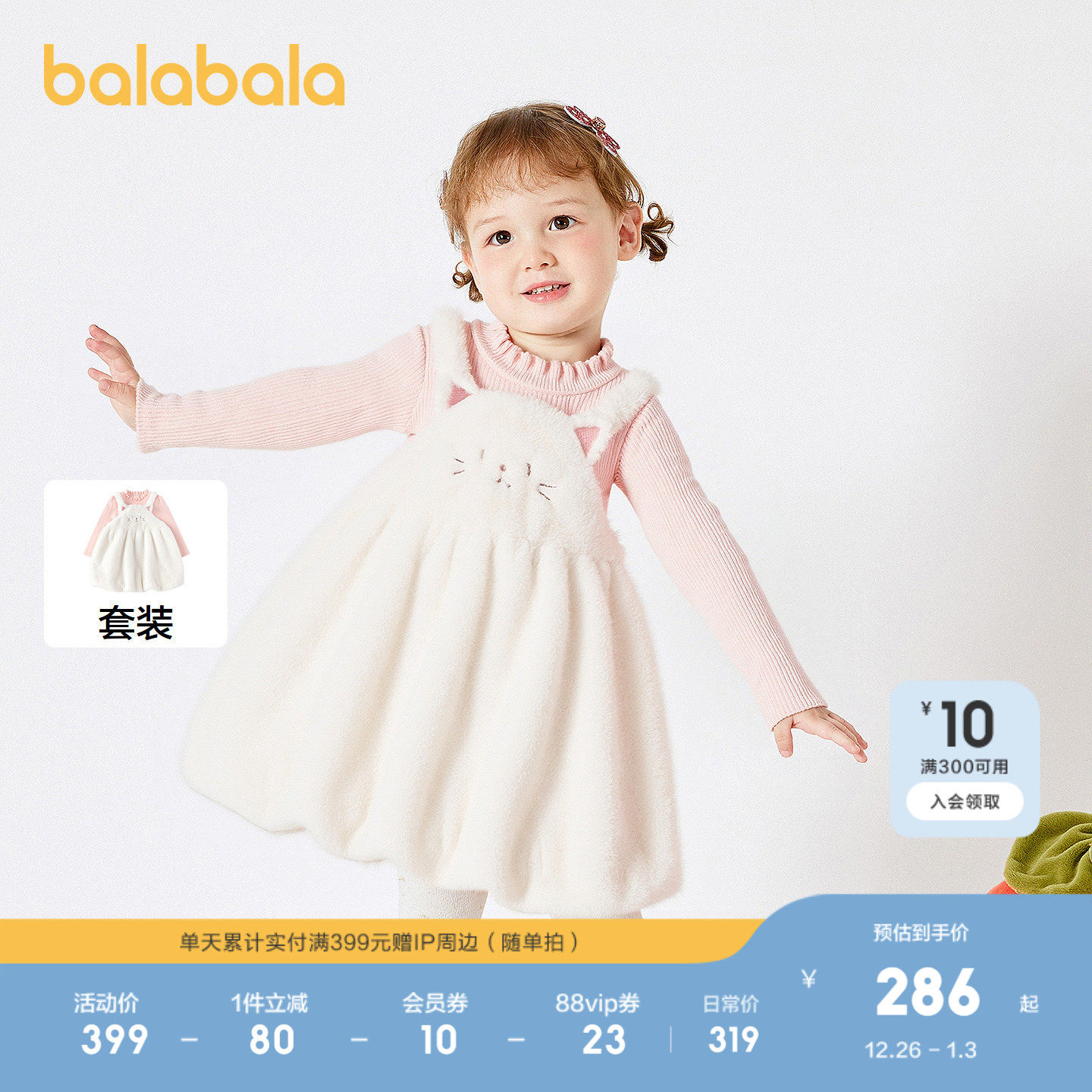 【商场同款】巴拉巴拉女童连衣裙套装秋冬2025新款背带裙两件套萌