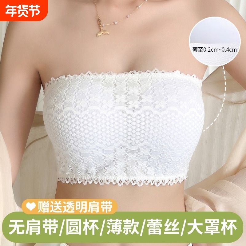 美泊姿圆杯大罩杯薄款抹胸内衣女无肩带裹胸内搭蕾丝打底防走光女