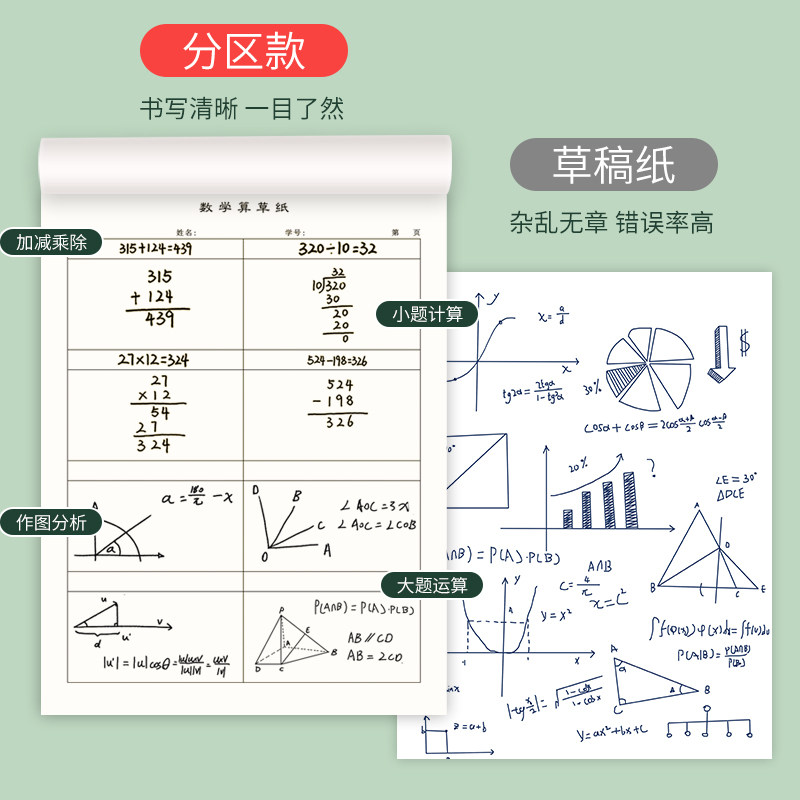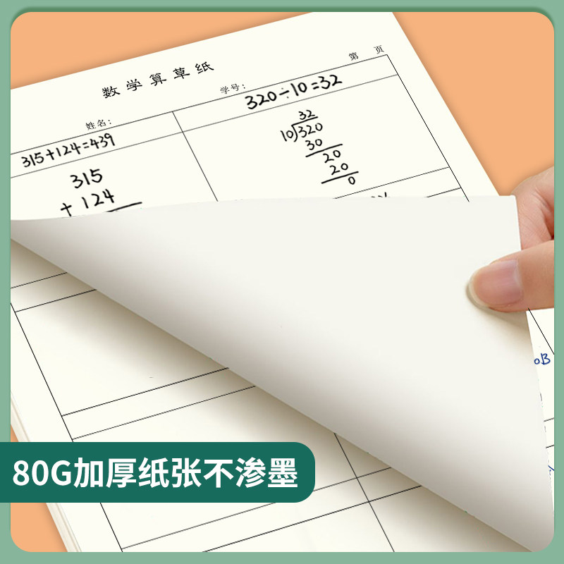分区草稿本B5初中小学生用16K数学运算对齐练习纸数学作业纸二三四五年级列竖式计算本易撕取学校团购批发