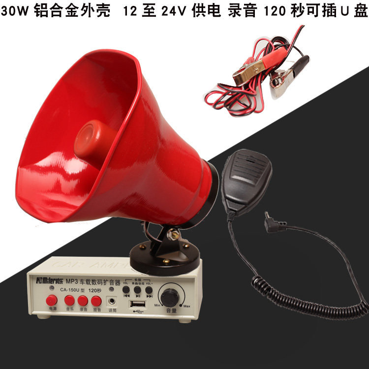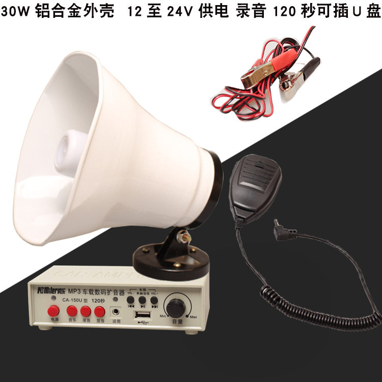 12\24V车载MP3数码扩音器120秒录音喇叭宣传地摊叫卖器套装喊话器