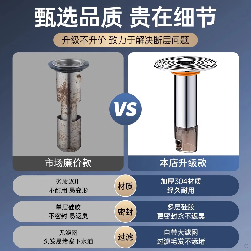 地漏加厚不锈钢防臭五金过滤芯卫生间阳台全铜下水道洗衣机浴室