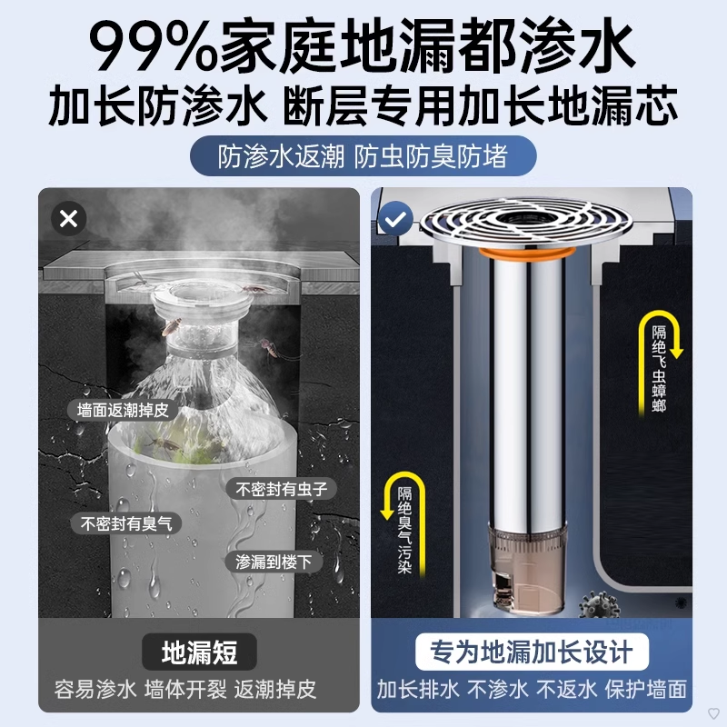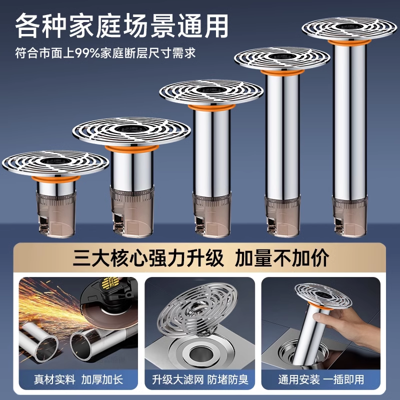 断层加长地漏芯卫生间下水道不锈钢延长管防虫防返臭修复神器内芯