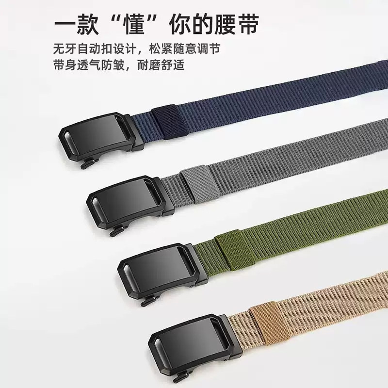 对插扣弹力皮带男自动扣时尚百搭潮流男士腰带户外尼龙帆布裤腰带