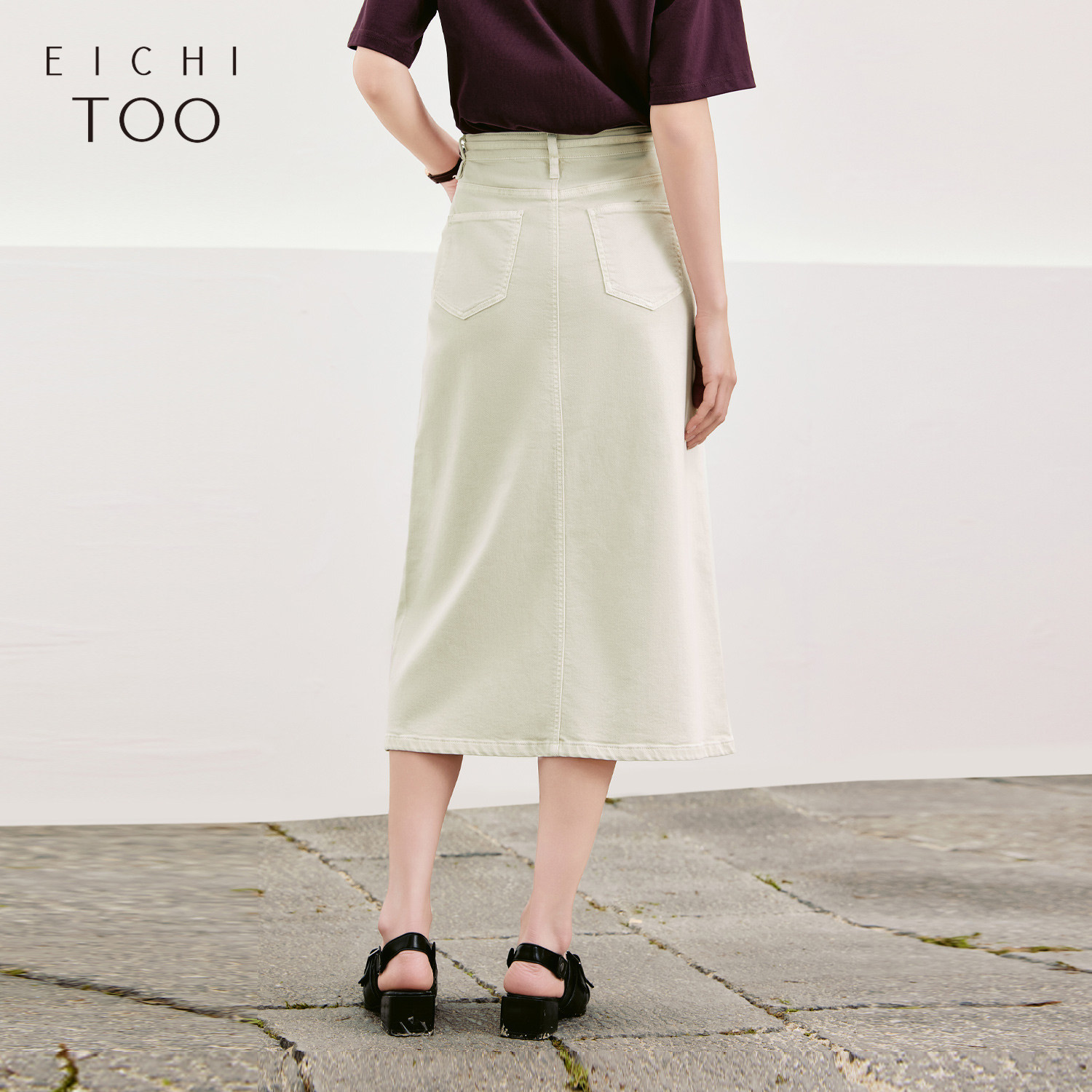 爱居兔设计感半身长裙女夏季新款下摆开衩时尚牛仔单裙