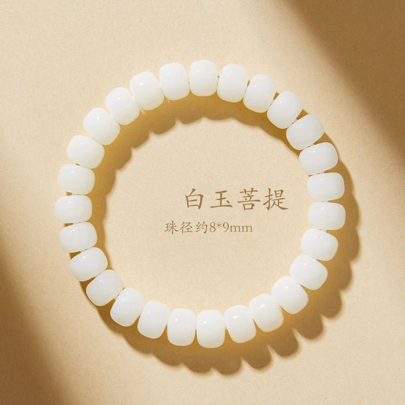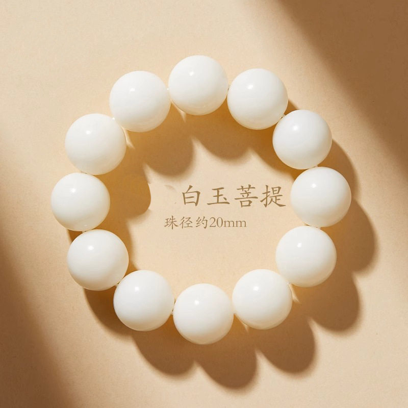 天然白玉菩提文玩手串佛珠手链纯手工穿孔男女手持念珠