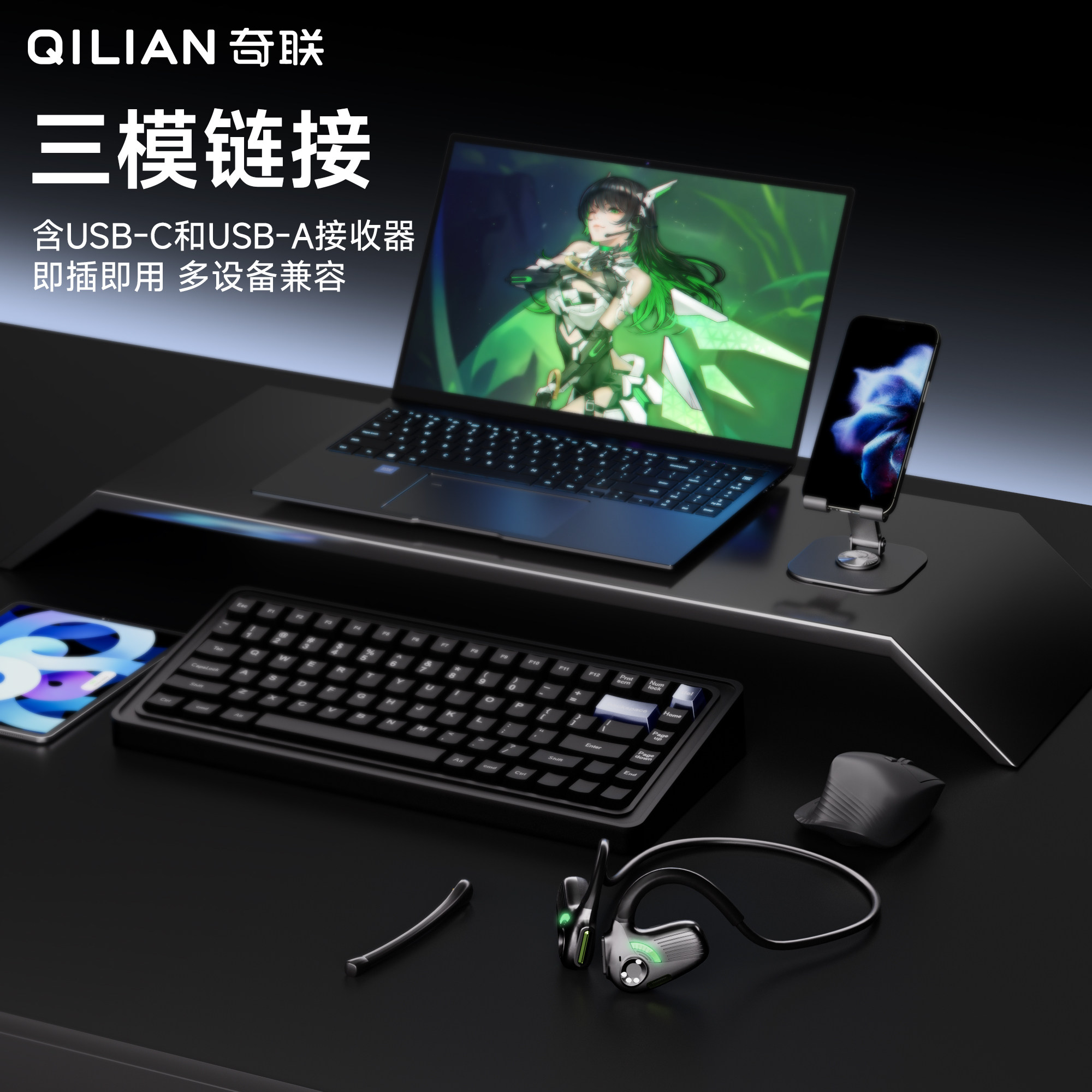 奇联极境蓝牙耳机头戴式游戏电竞手机降噪电脑麦克风二合一2.4g