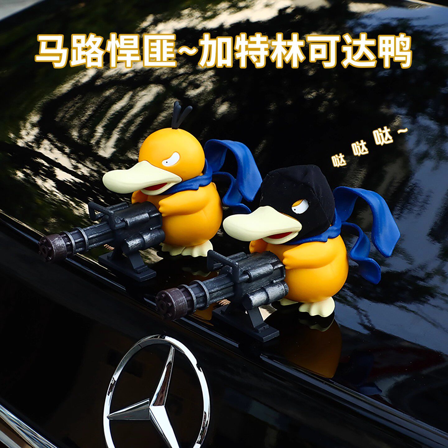 车载加特林可达鸭汽车摆件车顶车外电动车装饰品车后尾部公仔玩偶