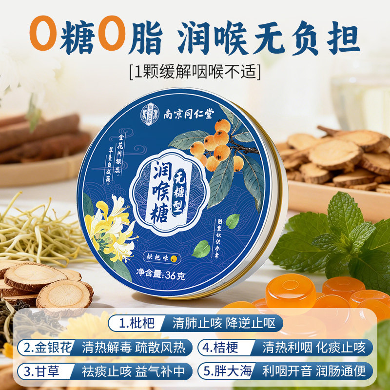 宝芝林无糖型润喉糖金银花清凉薄荷糖甘甜嗓喉润枇杷味糖果零食