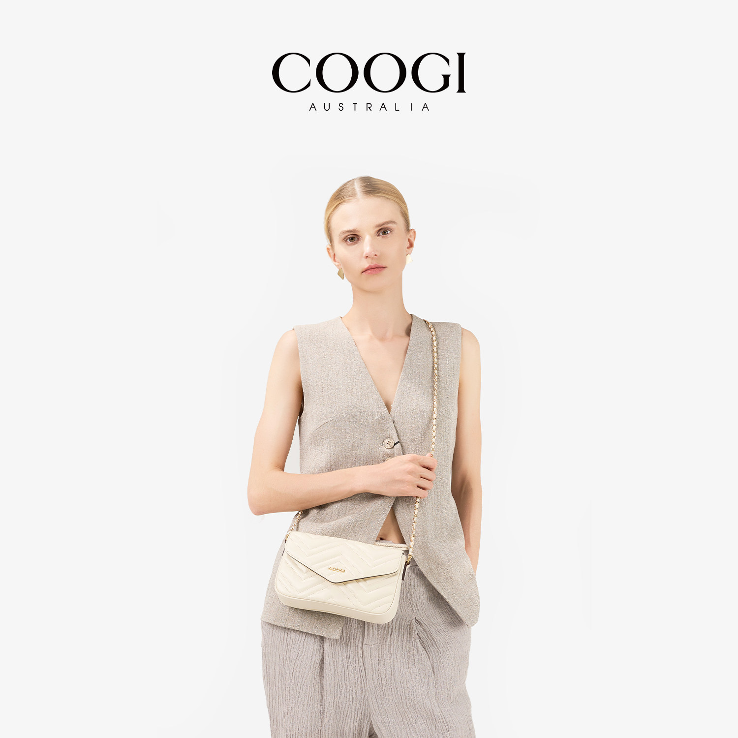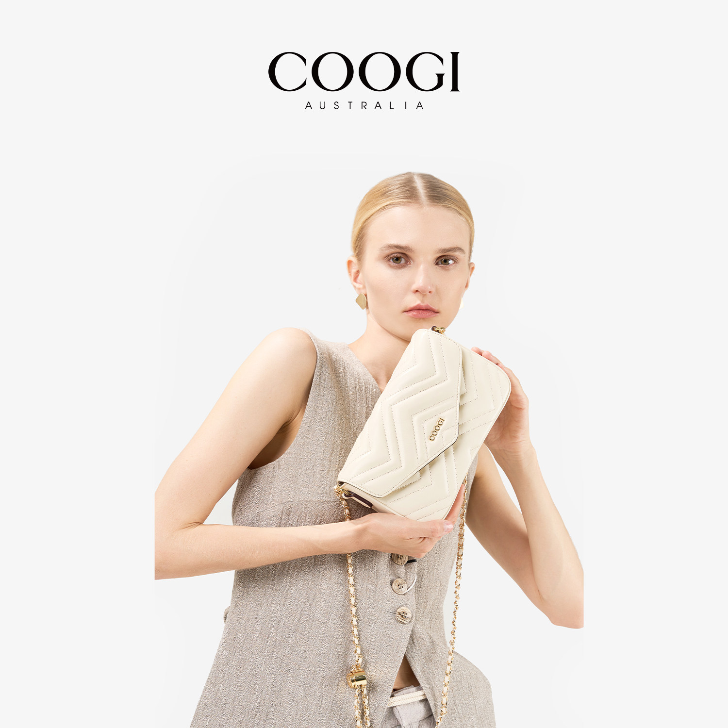 【明星同款】COOGI女包羊皮菱格链条包包通勤百搭真皮单肩斜挎包