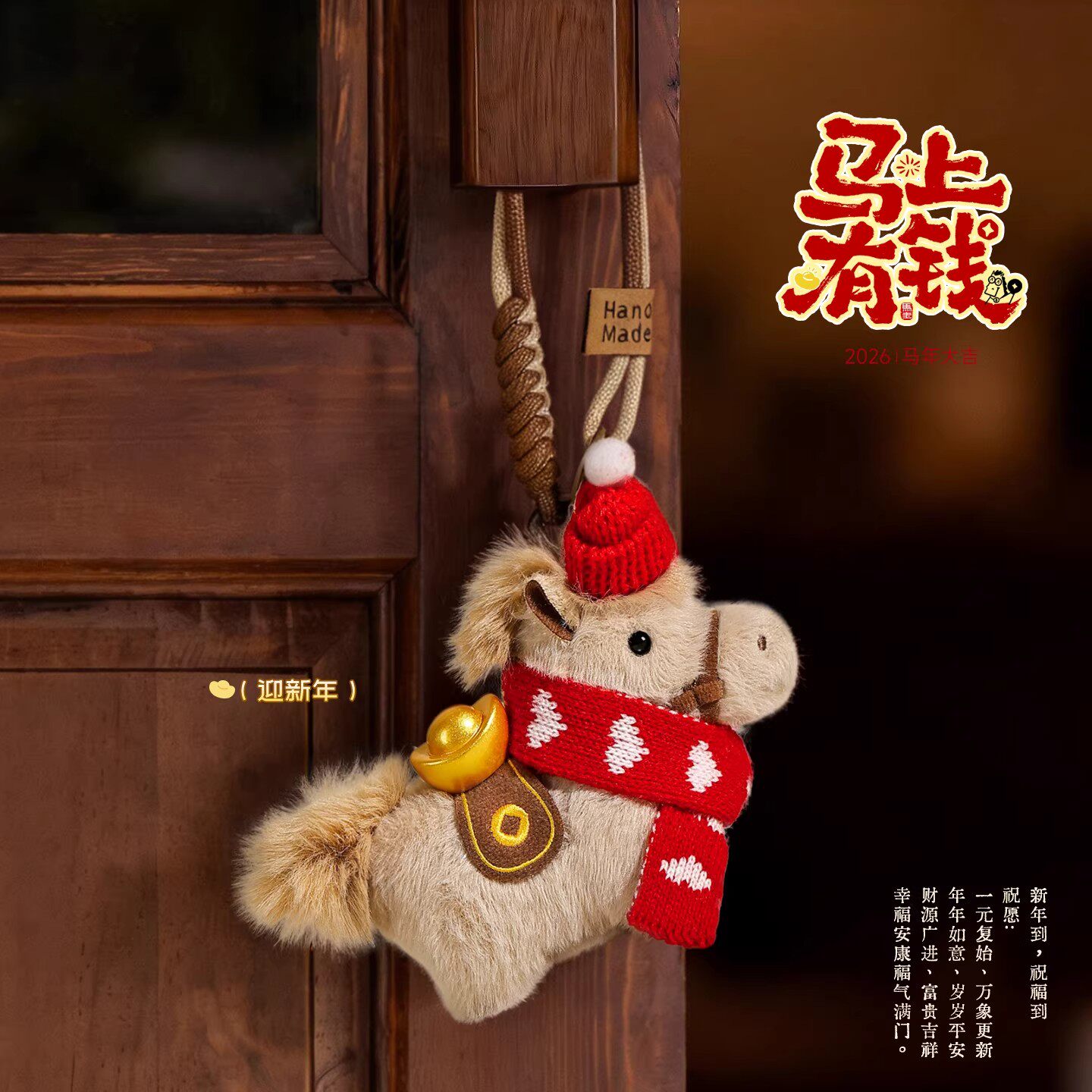 马上有钱元宝小马包包挂件毛绒玩偶钥匙扣书包挂饰吉祥物新年礼物
