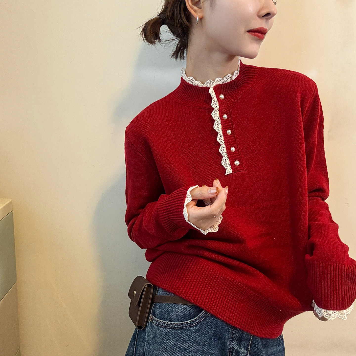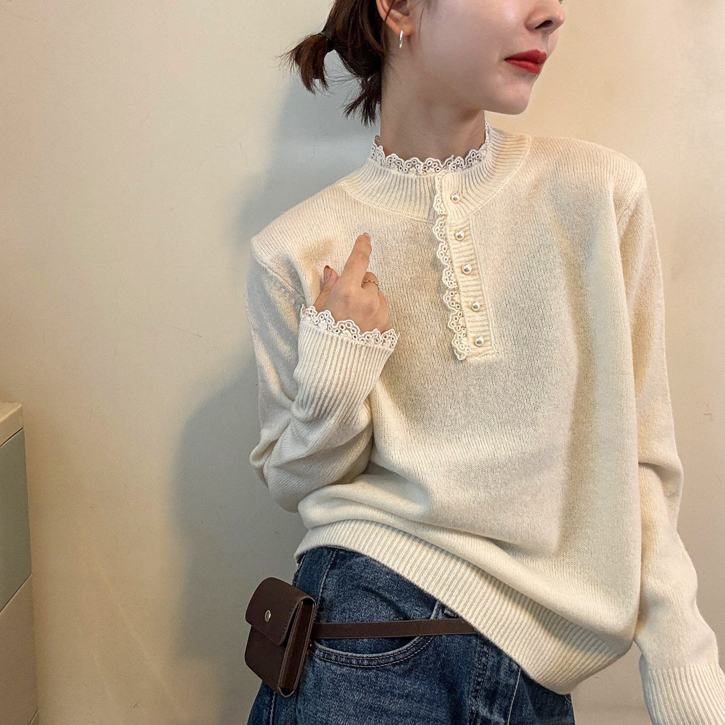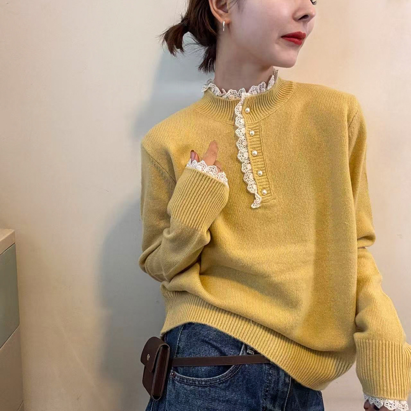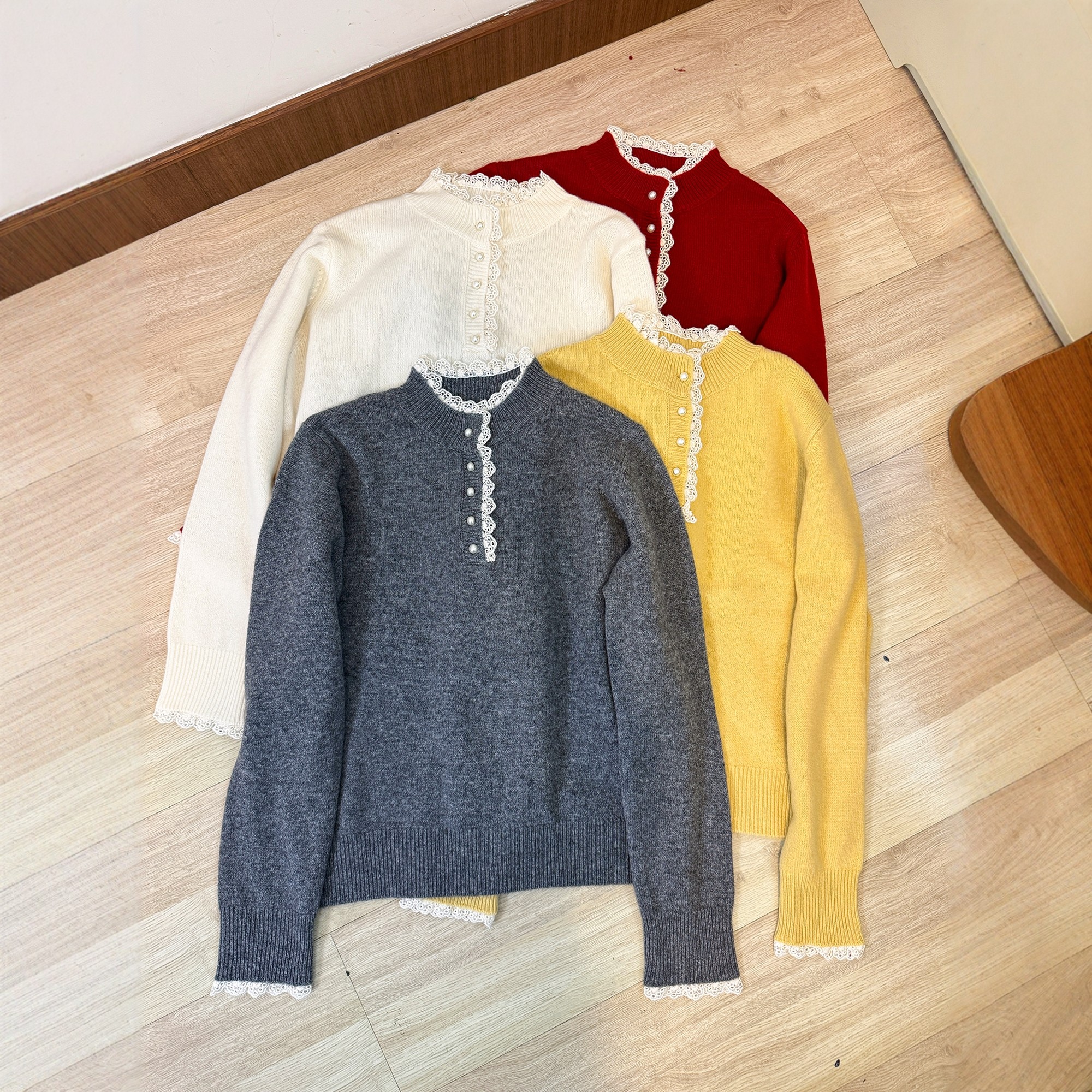 蕾丝钉珠细羊毛针织衫女欧洲站2025冬装新款欧货女装毛衣打底衫潮