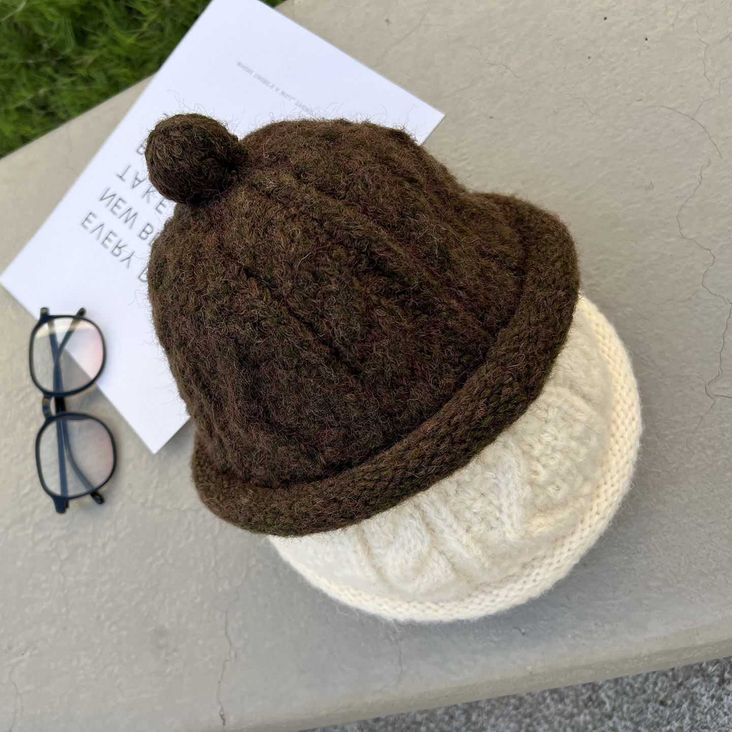韩版麻花针织毛线瓜皮帽女秋冬雅痞圆顶奶嘴复古日系帽子男地主帽