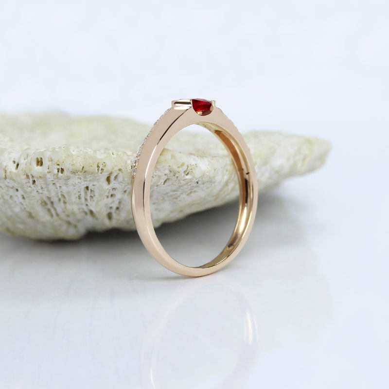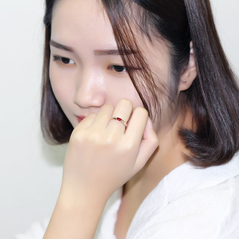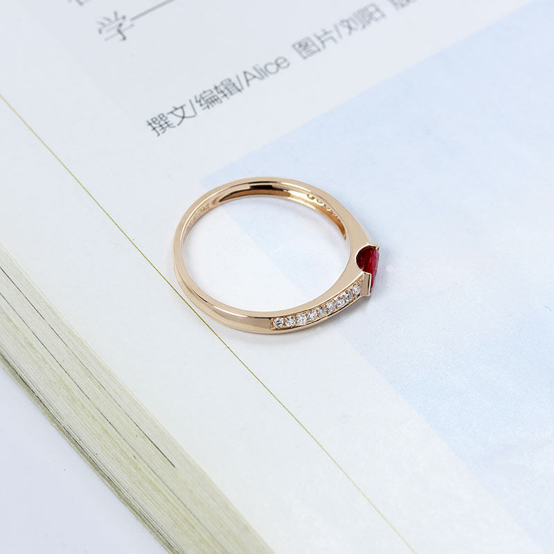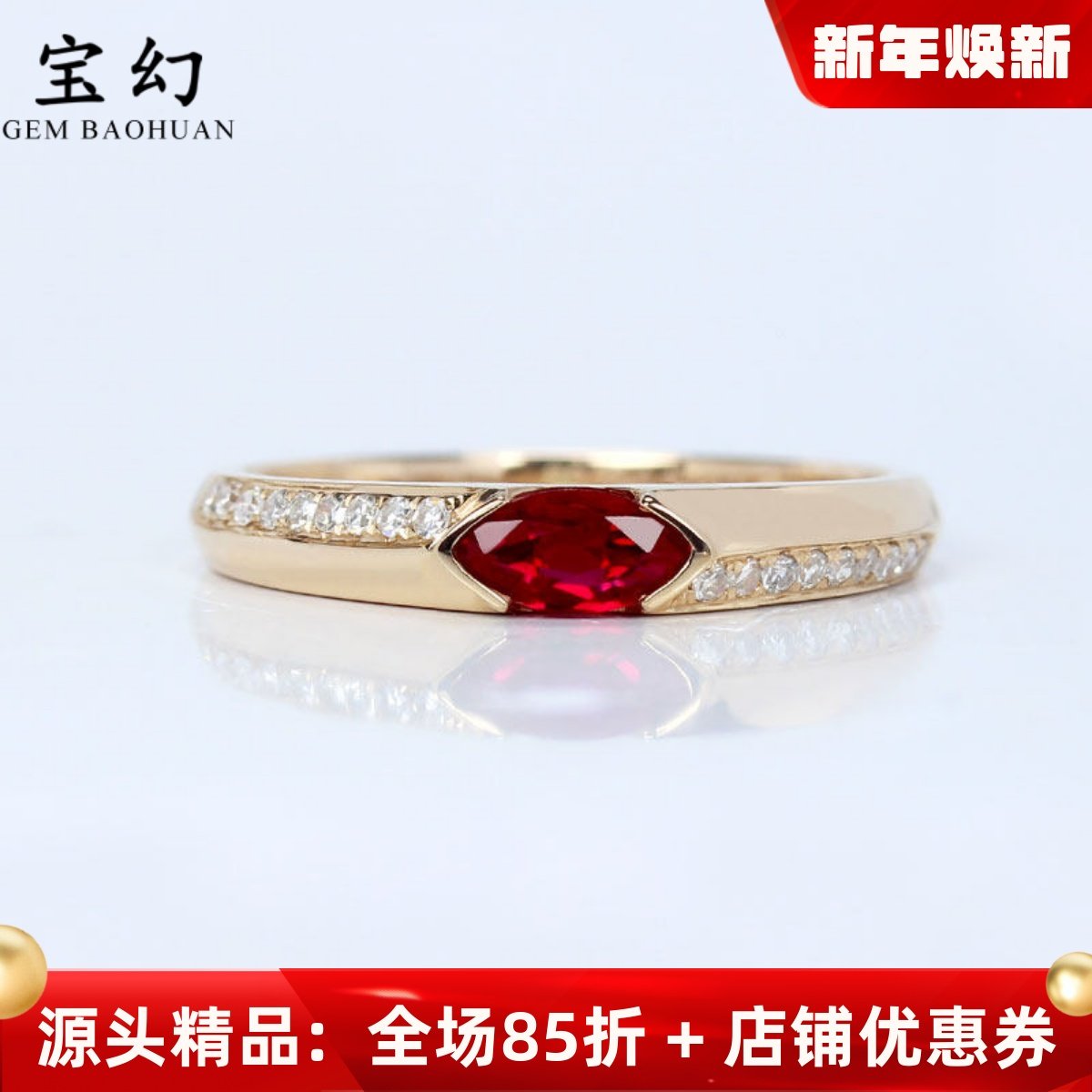 G18k玫瑰金天然鸽血红宝石马眼包角戒指 镶钻石指环女款正品定制