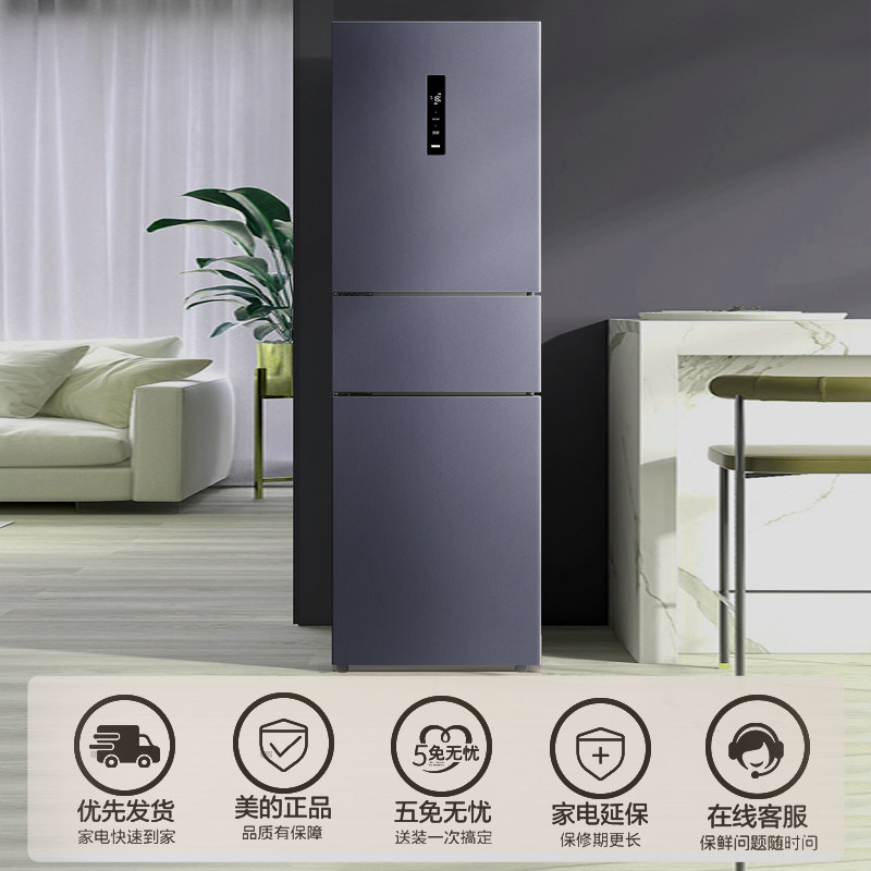 美的出品华凌282三开门风冷无霜家用小冰箱租房宿舍超薄一级能效