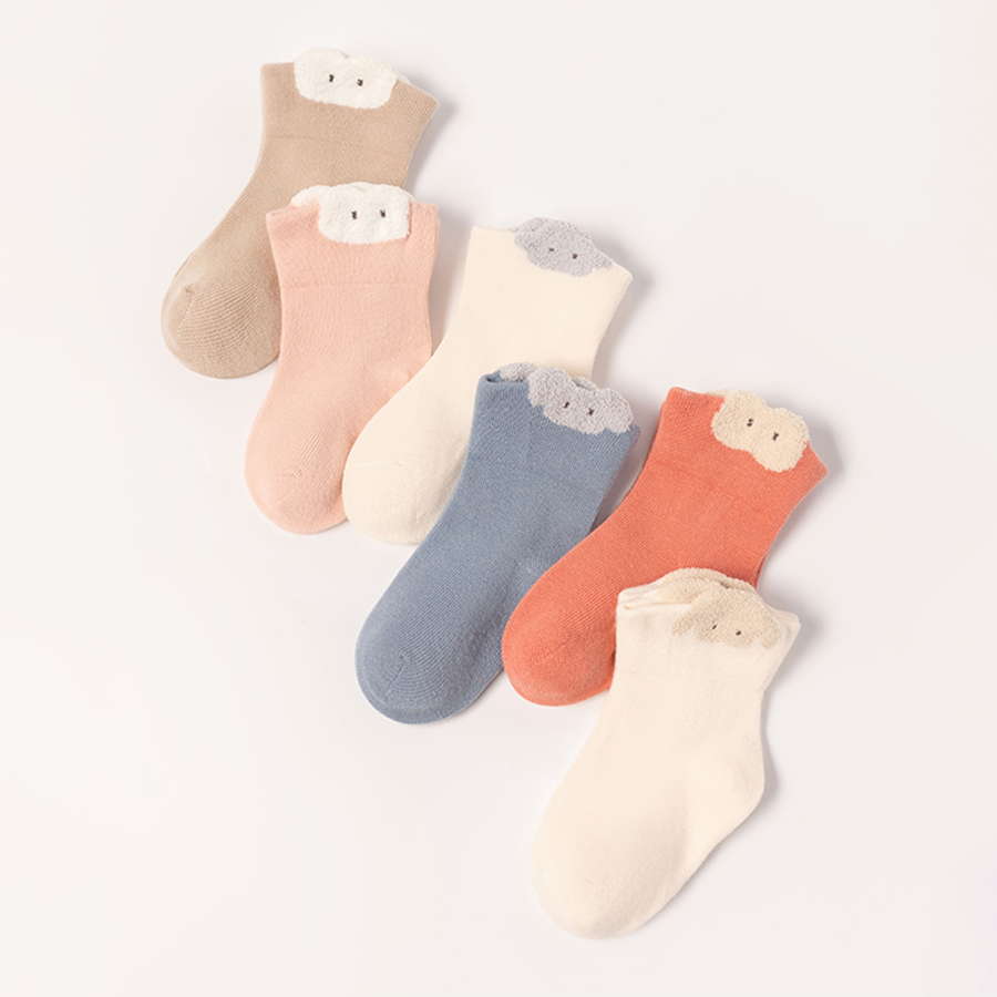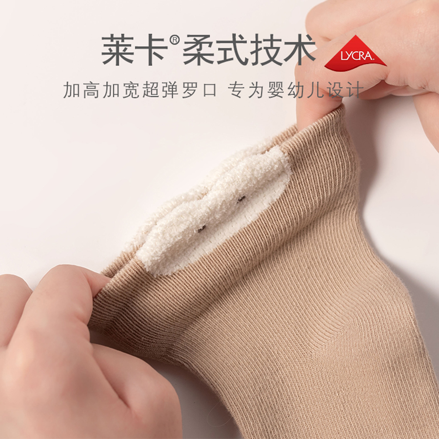 婧麒婴儿袜子春秋棉袜新生儿初生宝宝0-3月6无骨松口卡通中筒袜