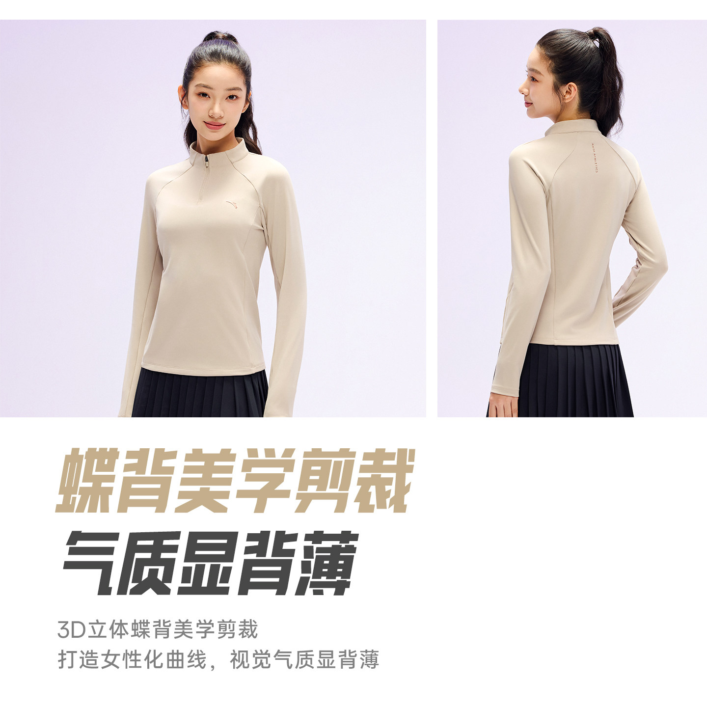 安踏超模T丨半拉链修身长袖t恤女士春季新款薄绒保暖内搭运动上衣
