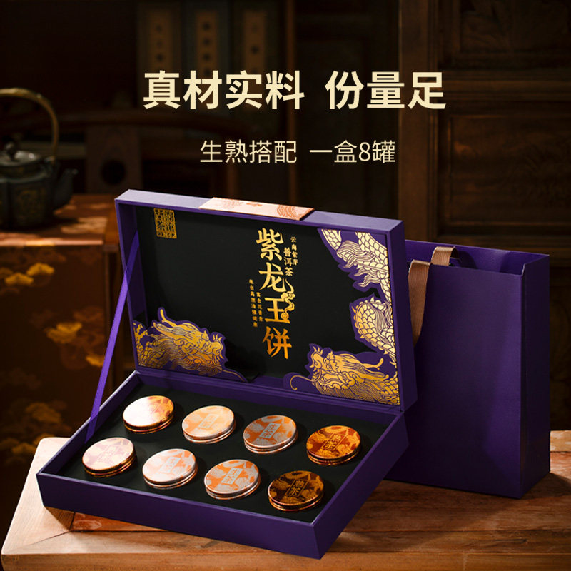 【紫芽普洱】澜沧古茶紫芽熟普洱熟茶叶紫龙玉饼便携小饼送礼盒装