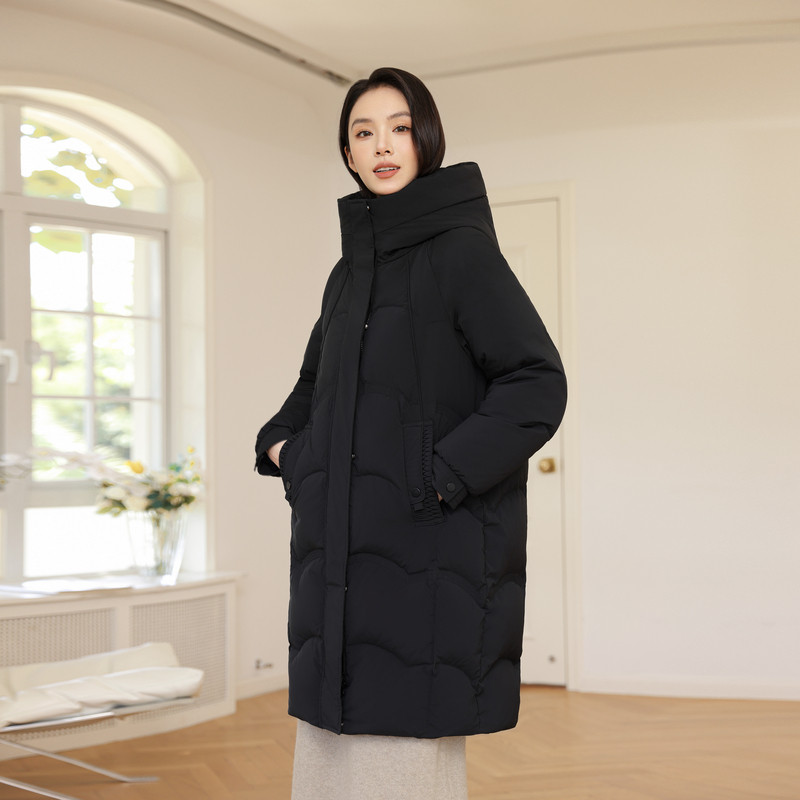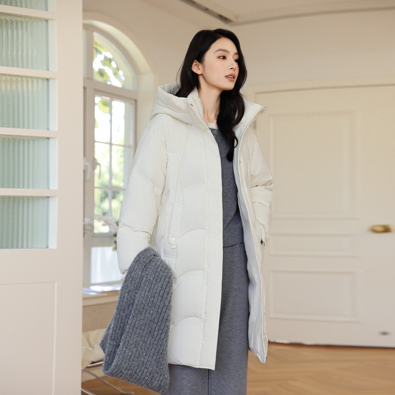 雪中飞2026春新款女士中长款连帽羽绒服廓形温馨显瘦加厚气质优雅