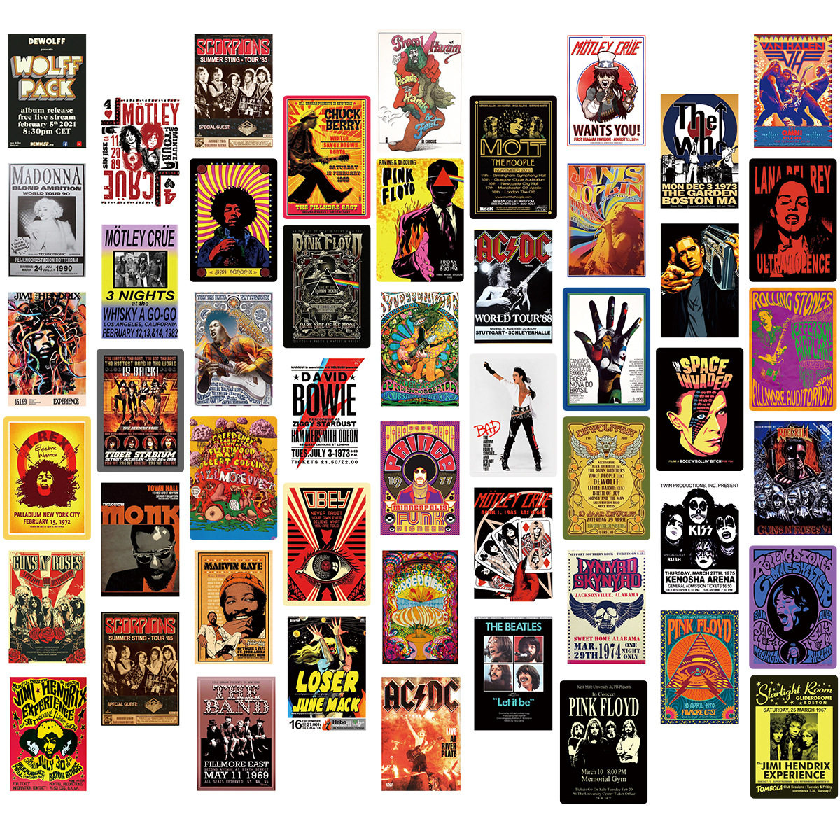 100张摇滚乐队音乐海报涂鸦贴纸旅行箱手机水杯笔记本电脑主机箱ipad拉杆箱电动车头盔手账吉他装饰贴画防水