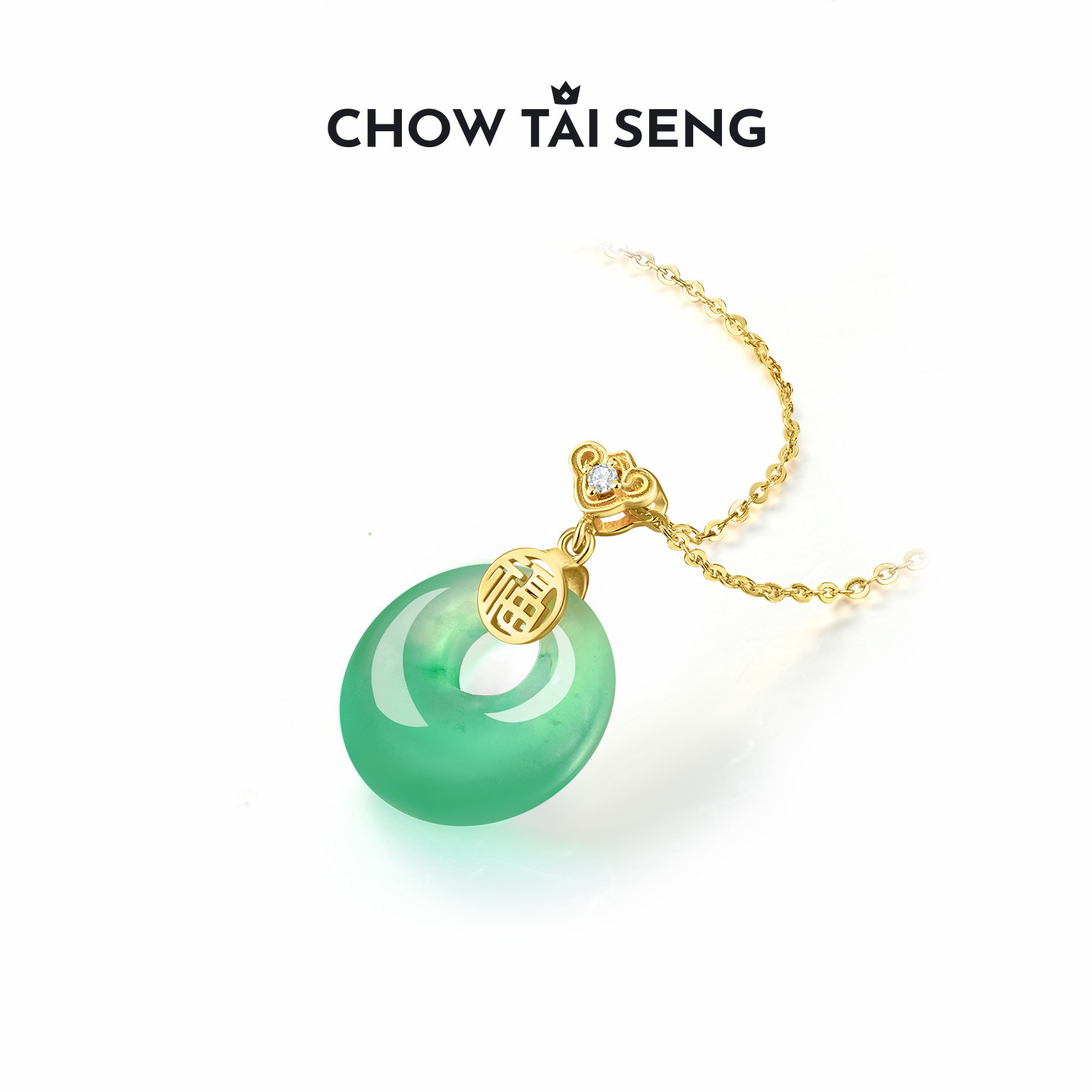 周大生福气平安扣项链女S925银玉髓吊坠轻奢本命年送妈妈生日礼物