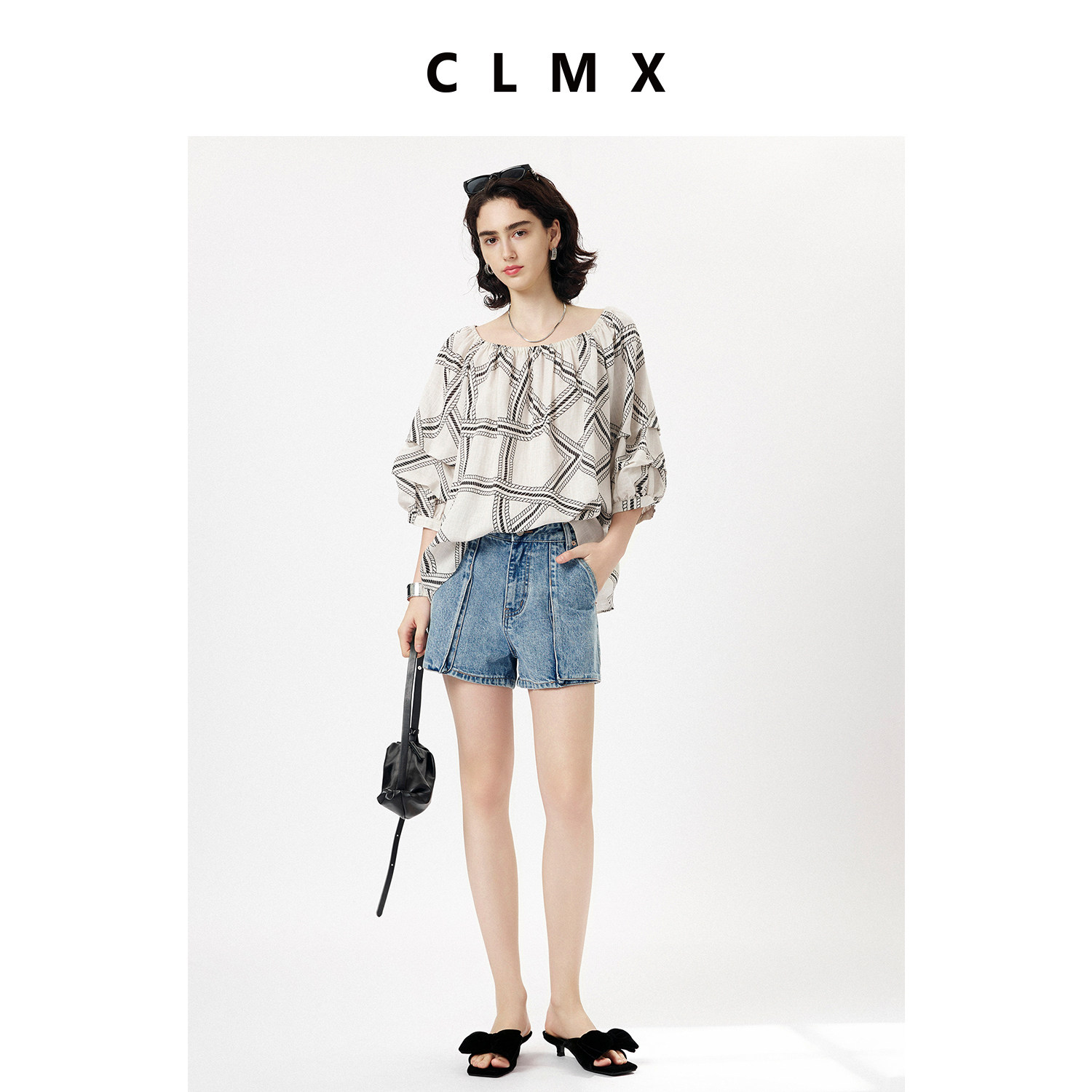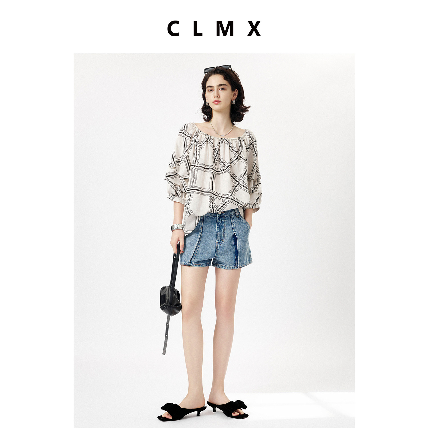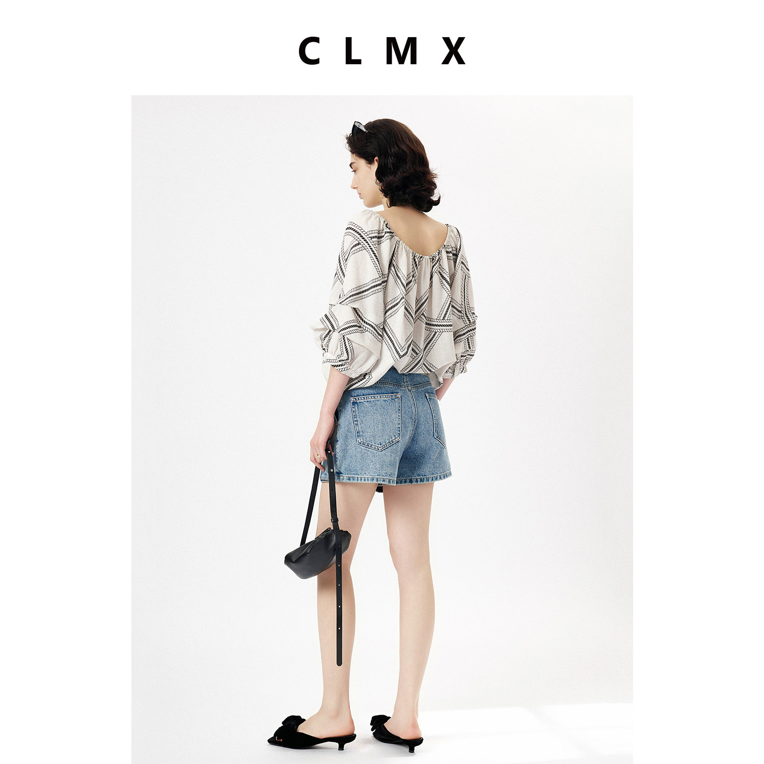 CLMX夏季微弹休闲裤子工装风立体贴袋斜纹牛仔面料100%棉牛仔短裤