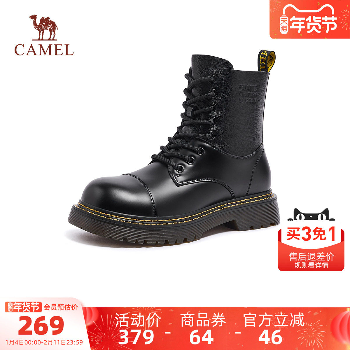 骆驼女鞋2025秋季新款马丁靴女款复古厚底加绒工装户外机车骑士靴